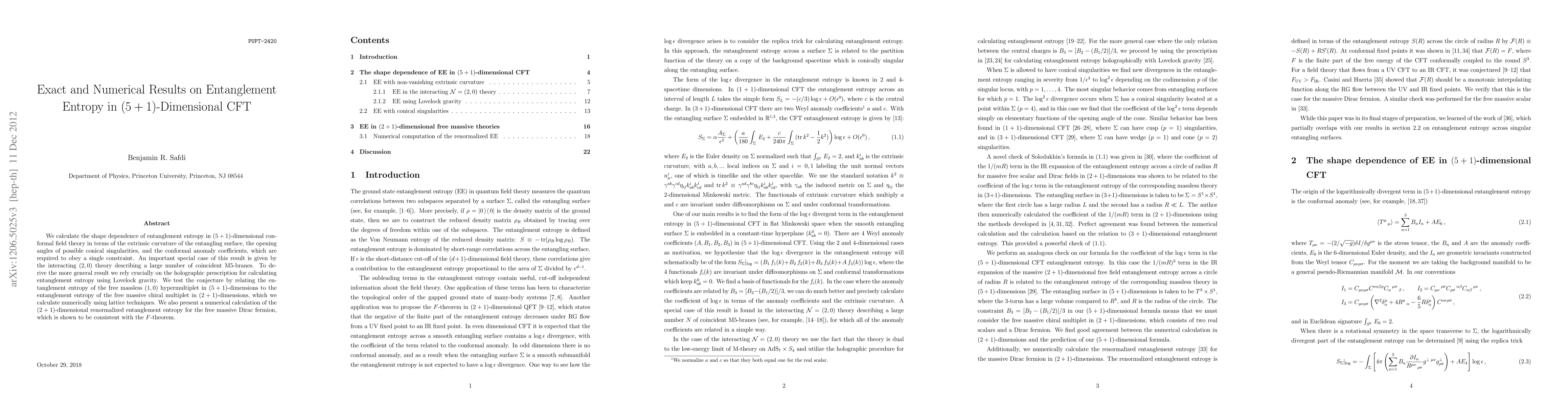 We calculate the shape dependence of entanglement entropy in (5+1)-dimensional conformal field theory in terms of the extrinsic curvature of the entangling surface, the opening angles of possible conical singularities, and the conformal anomaly coefficients, which are required to obey a single constraint. An important special case of this result is given by the interacting (2,0) theory describing a large number of coincident M5-branes. To derive the more general result we rely crucially on the holographic prescription for calculating entanglement entropy using Lovelock gravity. We test the conjecture by relating the entanglement entropy of the free massless (1,0) hypermultiplet in (5+1)-dimensions to the entanglement entropy of the free massive chiral multiplet in (2+1)-dimensions, which we calculate numerically using lattice techniques. We also present a numerical calculation of the (2+1)-dimensional renormalized entanglement entropy for the free massive Dirac fermion, which is shown to be consistent with the F-theorem.