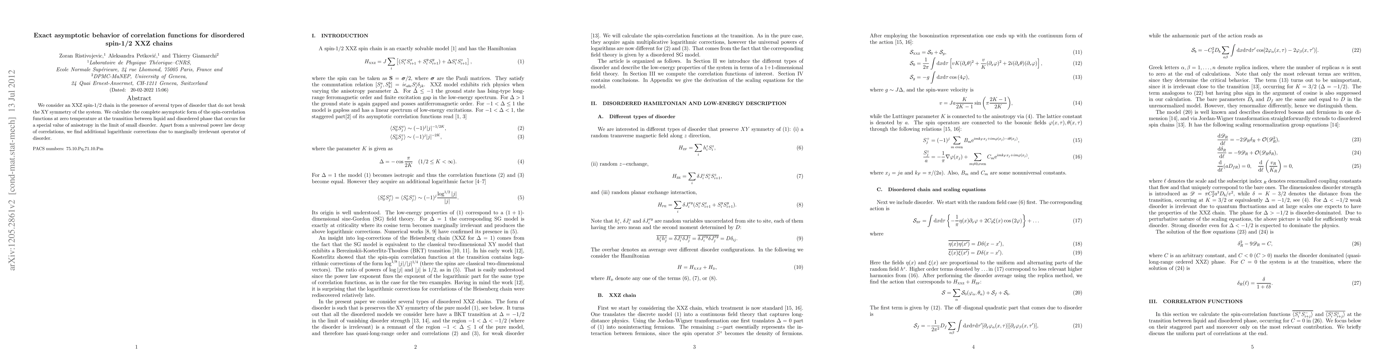 Researchers studied a type of spin chain with disorder and found that its correlations decay at a power law rate, but also exhibit logarithmic corrections due to the presence of a specific marginally irrelevant operator.