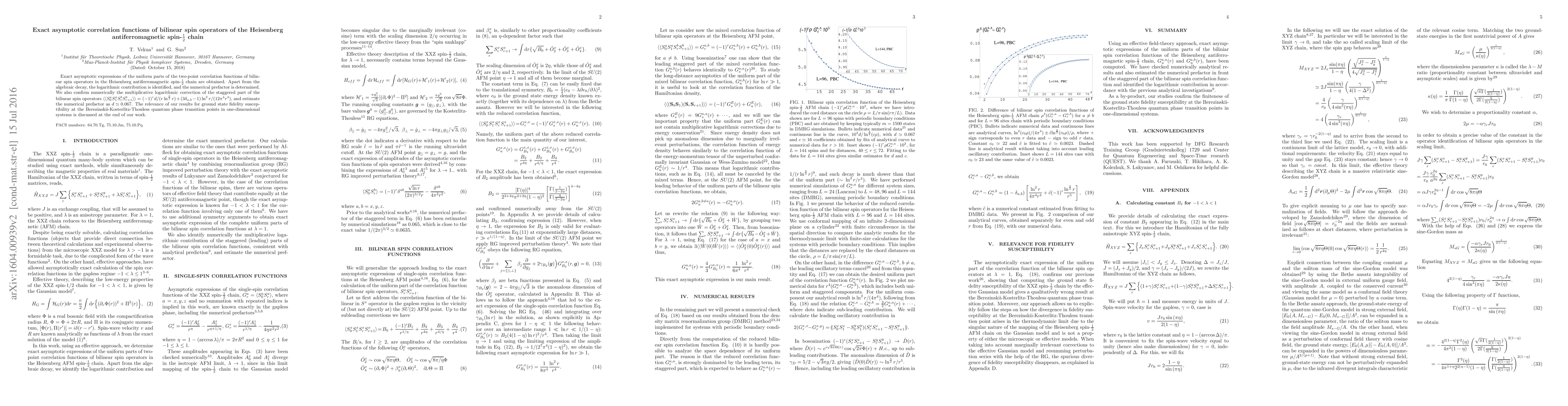 This paper derives exact asymptotic expressions for the correlation functions of bilinear spin operators in the Heisenberg antiferromagnetic spin-$\frac{1}{2}$ chain, identifying both algebraic decay and a logarithmic contribution, and numerically estimates the prefactor. The findings are relevant for understanding ground state fidelity susceptibility near quantum phase transition points in one-dimensional systems.
