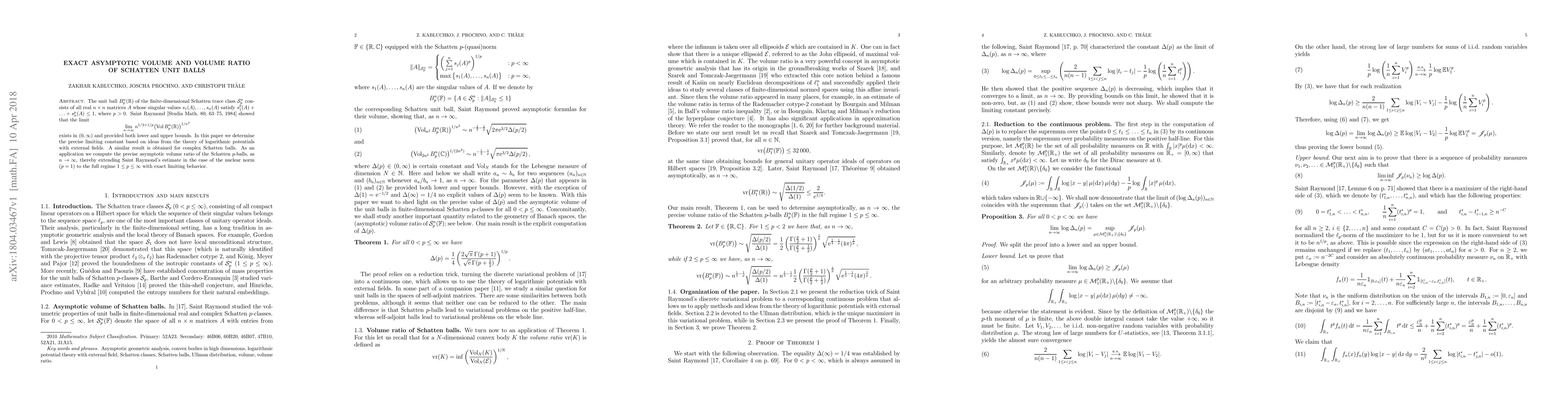 This paper determines the precise limiting constant for the asymptotic volume of Schatten $p$-balls as $n oty$, extending a previous estimate to exact behavior for $1 eq p eqinfty$. It also considers complex Schatten balls with similar results.