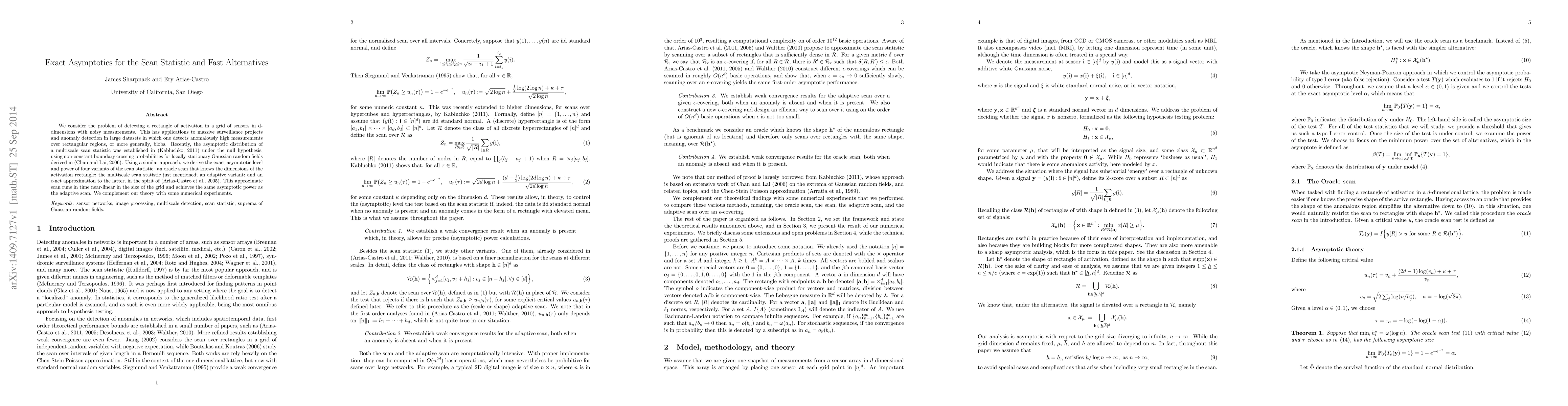 This paper develops exact asymptotic distributions for various scan statistics used to detect activated rectangles in sensor grids, including an oracle scan, multiscale scan, adaptive variant, and an efficient near-linear time epsilon-net approximation. Numerical experiments validate the theoretical findings.