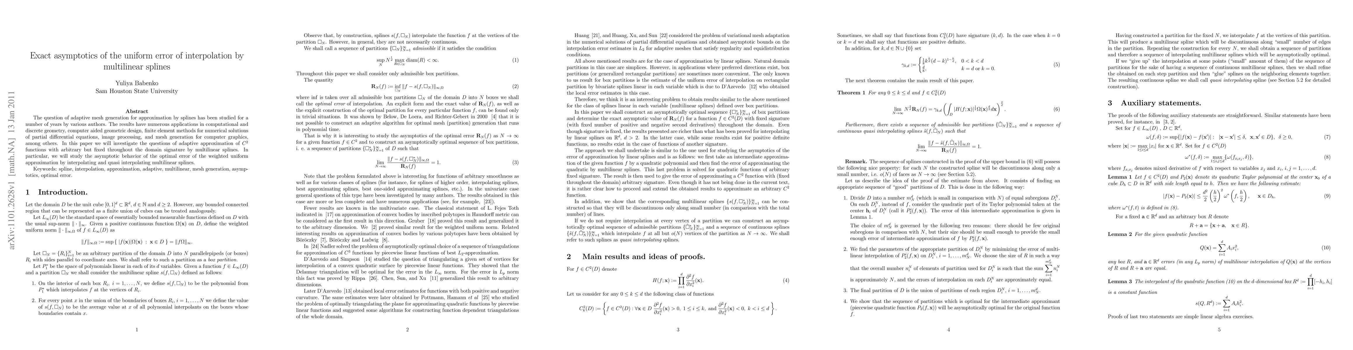The question of adaptive mesh generation for approximation by splines has been studied for a number of years by various authors. The results have numerous applications in computational and discrete geometry, computer aided geometric design, finite element methods for numerical solutions of partial differential equations, image processing, and mesh generation for computer graphics, among others. In this paper we will investigate the questions regarding adaptive approximation of C2 functions with arbitrary but fixed throughout the domain signature by multilinear splines. In particular, we will study the asymptotic behavior of the optimal error of the weighted uniform approximation by interpolating and quasi-interpolating multilinear splines.