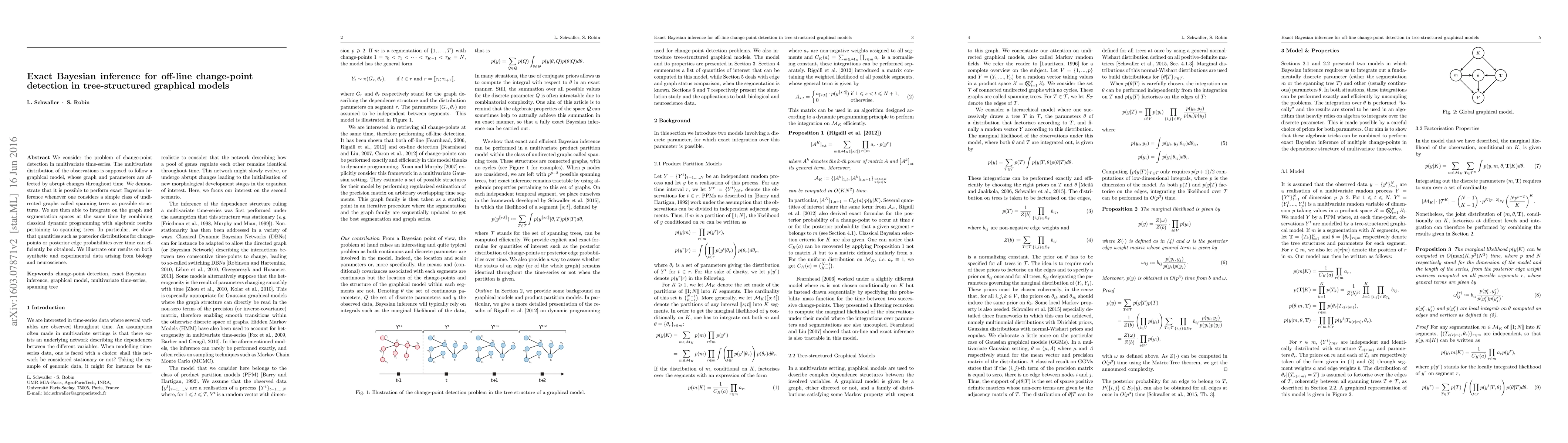 This paper presents an exact Bayesian inference method for detecting change-points in multivariate time-series governed by tree-structured graphical models. It leverages spanning trees to efficiently integrate over graph and segmentation spaces, enabling the computation of posterior distributions for change-points and edge probabilities.
