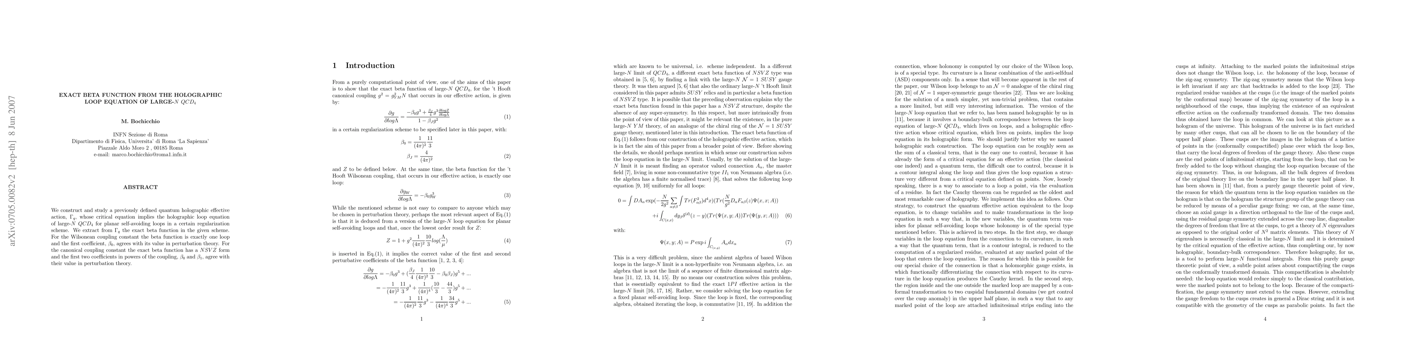 This paper constructs a quantum holographic effective action to derive the exact beta function for large-N QCD_4. The study finds that the beta function matches perturbative values for both Wilsonean and canonical coupling constants, confirming the NSVZ form for the latter.