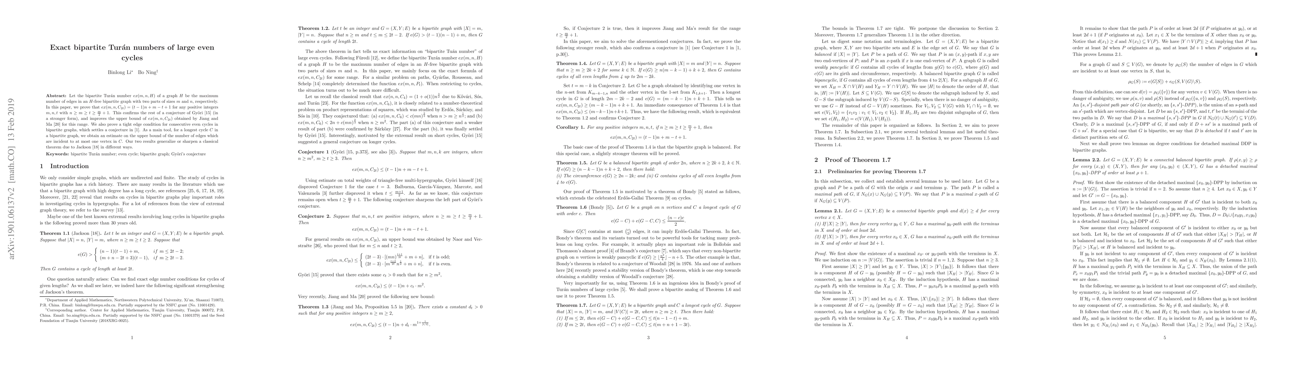 This paper proves the exact bipartite Turán number for large even cycles, confirming a conjecture and improving previous bounds. It also settles a related conjecture and provides a tight edge condition for consecutive even cycles in bipartite graphs.