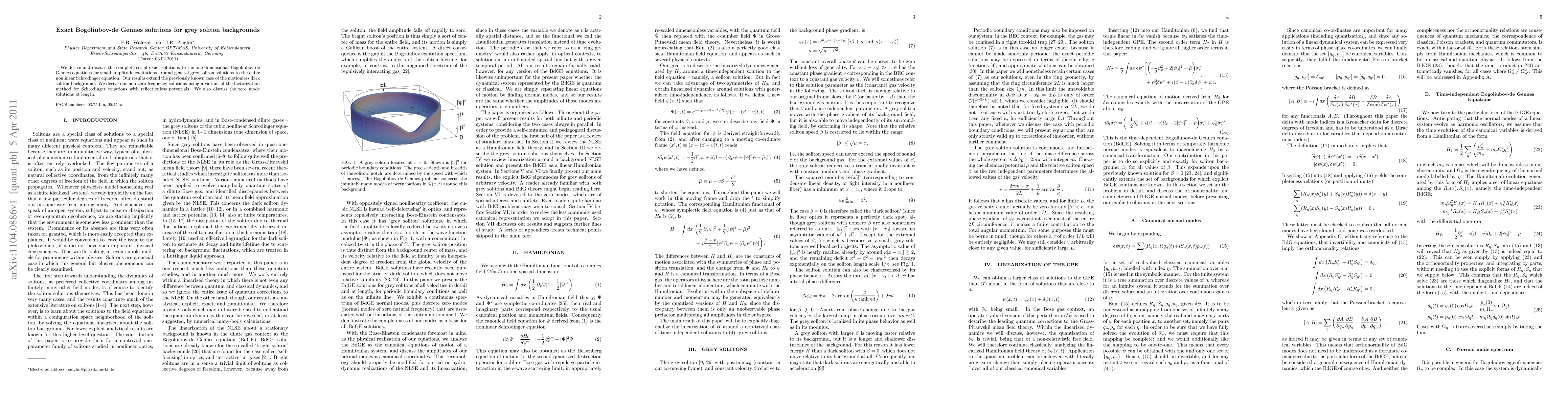 This paper presents exact solutions to the one-dimensional Bogoliubov-de Gennes equations for small amplitude excitations around grey soliton backgrounds, extending previous results for dark solitons. The solutions are derived using a factorization method and include detailed analysis of both non-zero frequency and zero mode solutions.