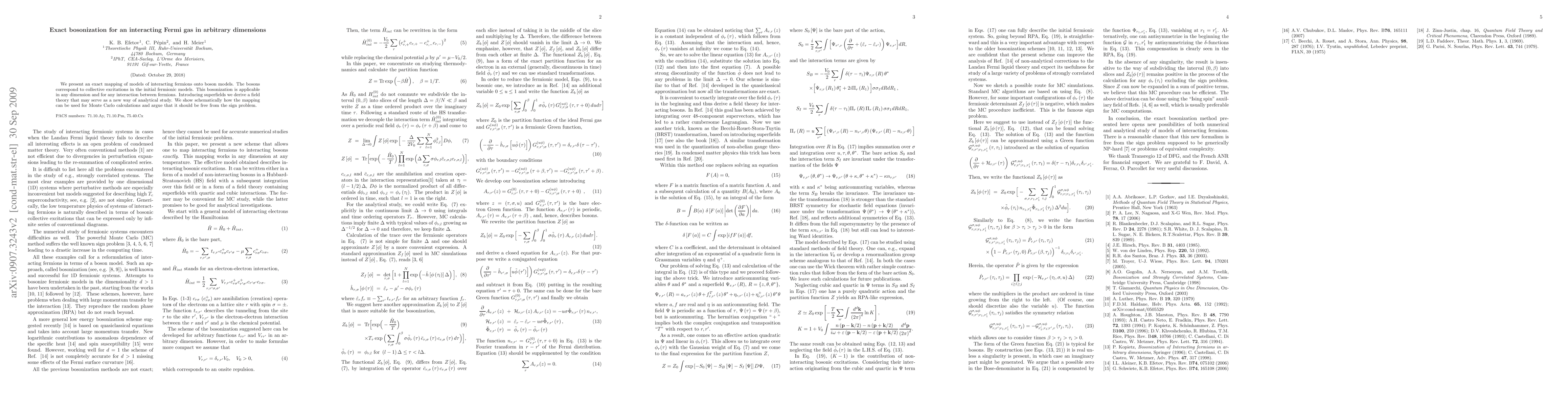 We present an exact mapping of models of interacting fermions onto boson models. The bosons correspond to collective excitations in the initial fermionic models. This bosonization is applicable in any dimension and for any interaction between fermions. We show schematically how the mapping can be used for Monte Carlo calculations and argue that it should be free from the sign problem. Introducing superfields we derive a field theory that may serve as a new way of analytical study.