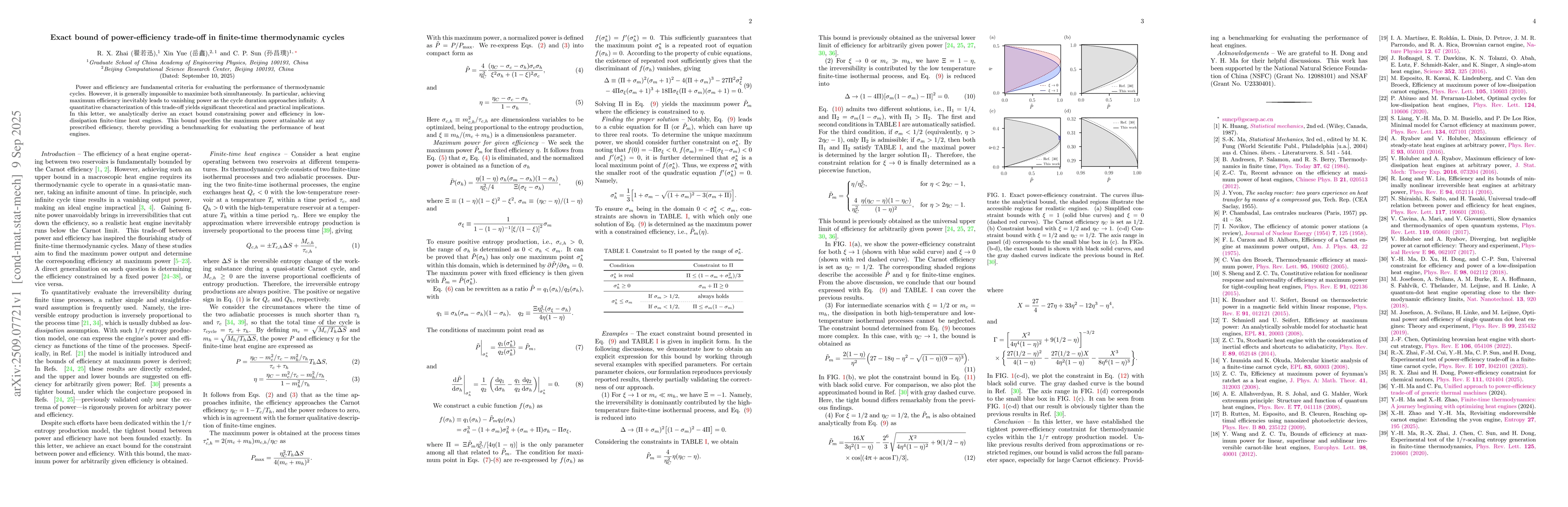 Power and efficiency are fundamental criteria for evaluating the performance of thermodynamic cycles. However, it is generally impossible to maximize both simultaneously. In particular, achieving maximum efficiency inevitably leads to vanishing power as the cycle duration approaches infinity. A quantitative characterization of this trade-off yields significant theoretical and practical implications. In this letter, we analytically derive an exact bound constraining power and efficiency in low-dissipation finite-time heat engines. This bound specifies the maximum power attainable at any prescribed efficiency, thereby providing a benchmarking for evaluating the performance of heat engines.