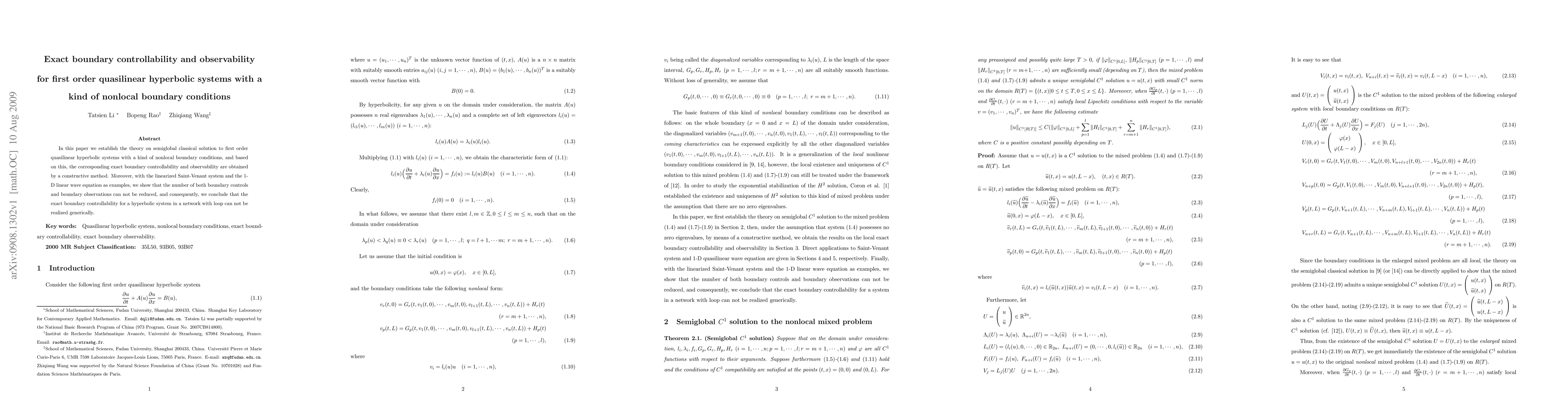 Researchers establish a theory for controlling and observing first-order quasilinear hyperbolic systems with nonlocal boundary conditions, showing that exact controllability is not always achievable in networks with loops.