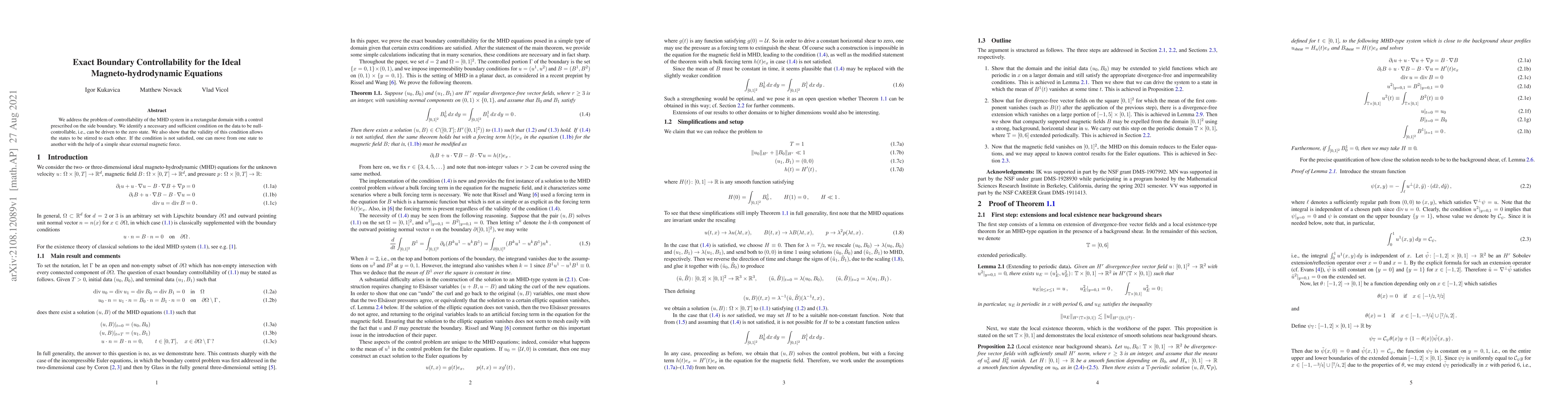 We address the problem of controllability of the MHD system in a rectangular domain with a control prescribed on the side boundary. We identify a necessary and sufficient condition on the data to be null controllable, i.e., can be driven to the zero state. We also show that the validity of this condition allows the states to be stirred to each other. If the condition is not satisfied, one can move from one state to another with the help of a simple shear external magnetic force.