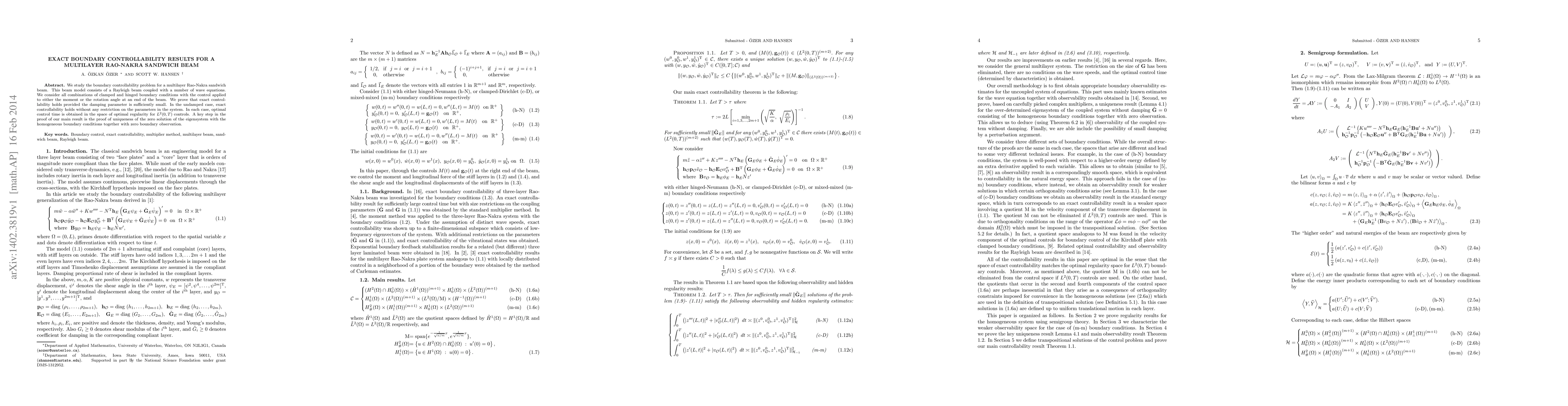 Researchers prove that a multilayer Rao-Nakra sandwich beam can be controlled exactly with sufficient damping, regardless of boundary conditions or control type, and derive optimal control times for the undamped case.