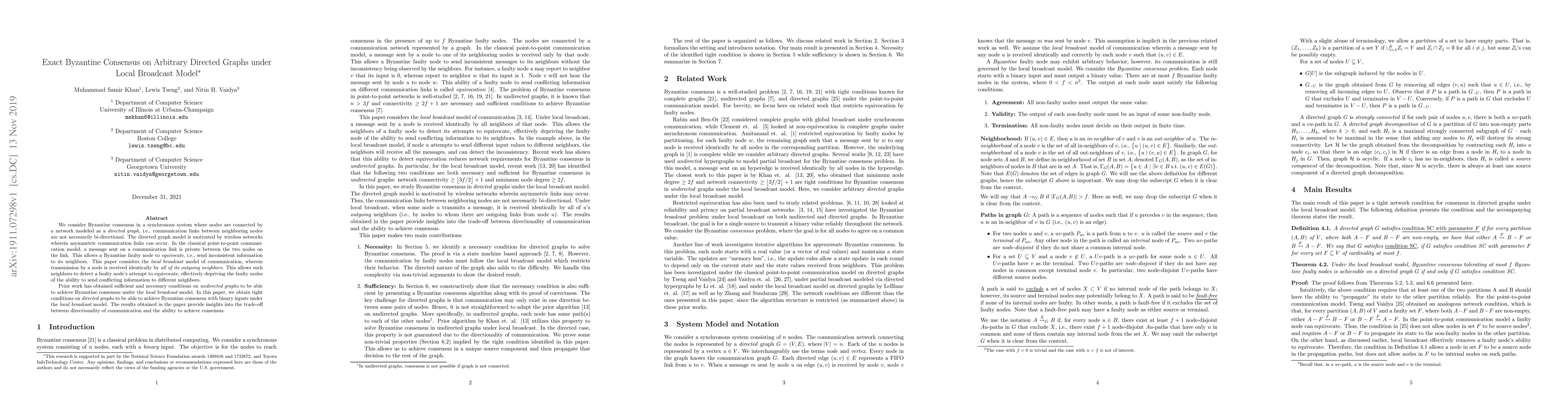 This paper investigates Byzantine consensus on directed graphs under a local broadcast communication model, where messages are received identically by all outgoing neighbors. It establishes tight conditions for achieving consensus on directed graphs, providing insights into the trade-off between communication directionality and consensus feasibility.