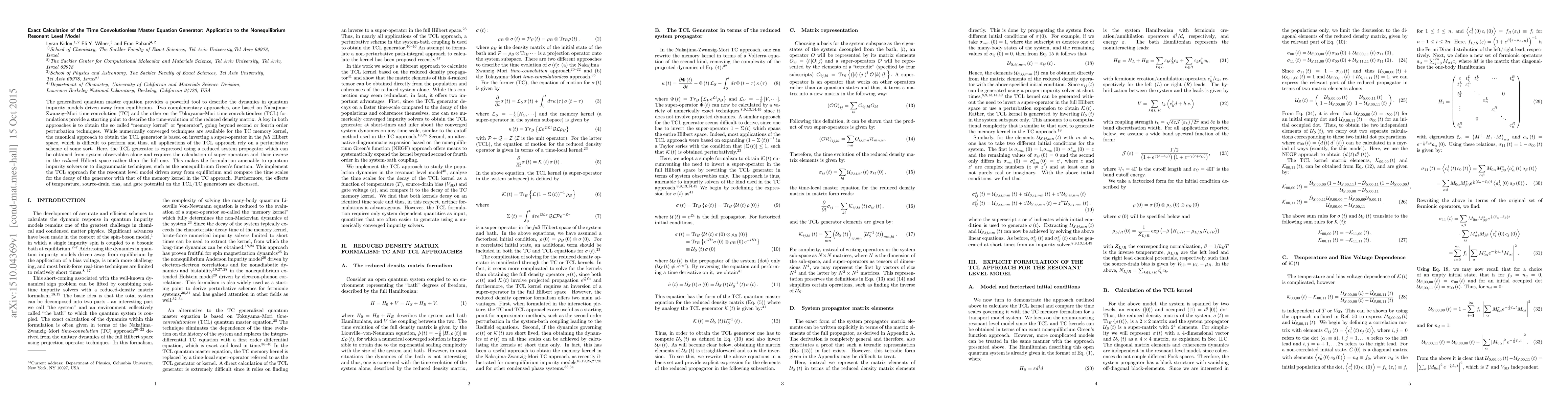 The generalized quantum master equation provides a powerful tool to describe the dynamics in quantum impurity models driven away from equilibrium. Two complementary approaches, one based on Nakajima--Zwanzig--Mori time-convolution (TC) and the other on the Tokuyama--Mori time-convolutionless (TCL) formulations provide a starting point to describe the time-evolution of the reduced density matrix. A key in both approaches is to obtain the so called "memory kernel" or "generator", going beyond second or fourth order perturbation techniques. While numerically converged techniques are available for the TC memory kernel, the canonical approach to obtain the TCL generator is based on inverting a super-operator in the \emph{full} Hilbert space, which is difficult to perform and thus, all applications of the TCL approach rely on a perturbative scheme of some sort. Here, the TCL generator is expressed using a reduced system propagator which can be obtained from system observables alone and requires the calculation of super-operators and their inverse in the \emph{reduced }Hilbert space rather than the full one. This makes the formulation amenable to quantum impurity solvers or to diagrammatic techniques, such as the nonequilibrium Green's function. We implement the TCL approach for the resonant level model driven away from equilibrium and compare the time scales for the decay of the generator with that of the memory kernel in the TC approach. Furthermore, the effects of temperature, source-drain bias, and gate potential on the TCL/TC generators are discussed.