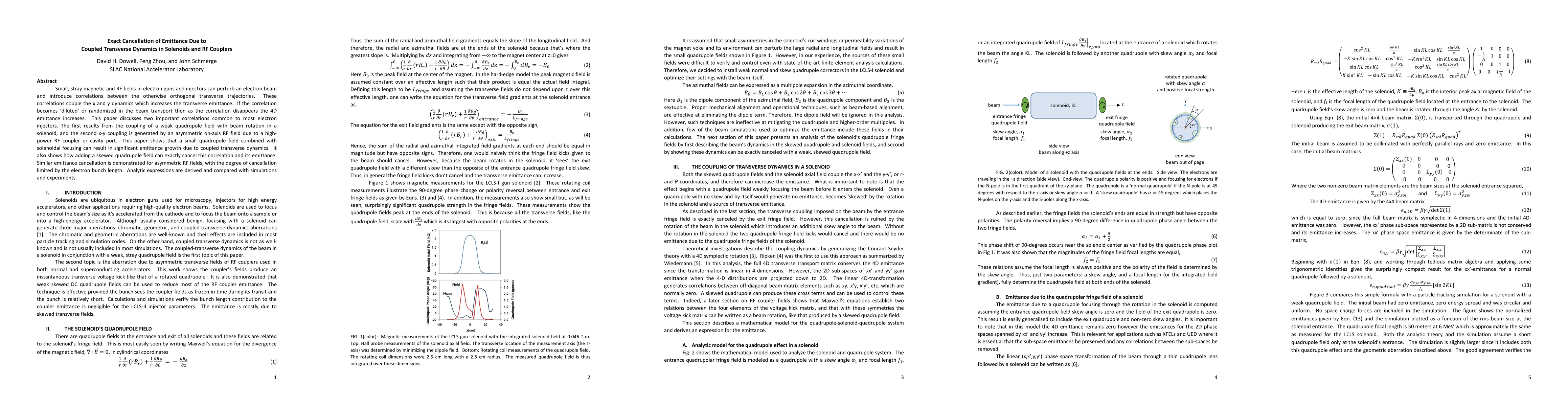 This paper investigates methods to cancel emittance growth due to coupled transverse dynamics in electron beams caused by solenoids and RF couplers. It demonstrates that a skewed quadrupole field can precisely counteract the emittance increase from both solenoidal and RF-induced correlations, with a detailed analysis supported by simulations and experiments.