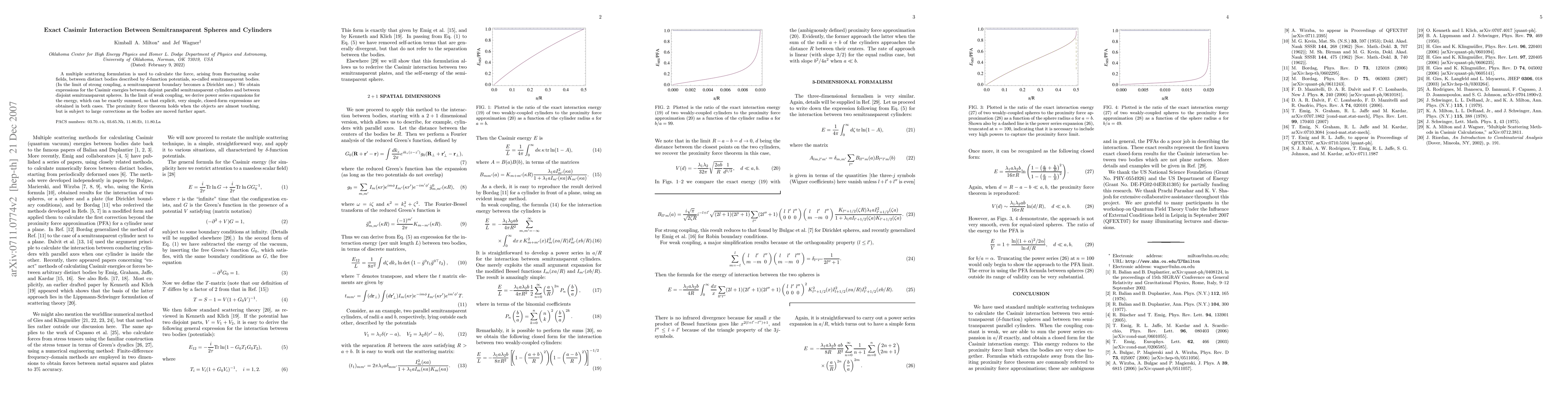 This paper calculates the Casimir interaction forces between semitransparent spheres and cylinders using a multiple scattering approach, deriving exact, simple closed-form expressions for the Casimir energies in both weak and strong coupling limits. The proximity force theorem holds near contact but shows significant corrections at larger separations.