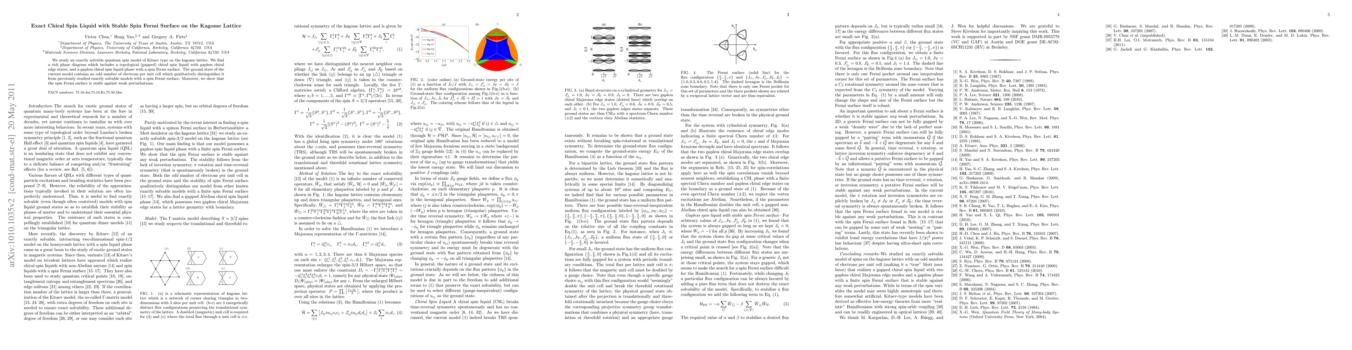 This paper presents an exactly solvable quantum spin model on the kagome lattice, revealing a topological chiral spin liquid with gapless chiral edge states and a gapless chiral spin liquid phase with a stable spin Fermi surface. The model's unique feature is its odd electron count per unit cell, distinguishing it from other models.