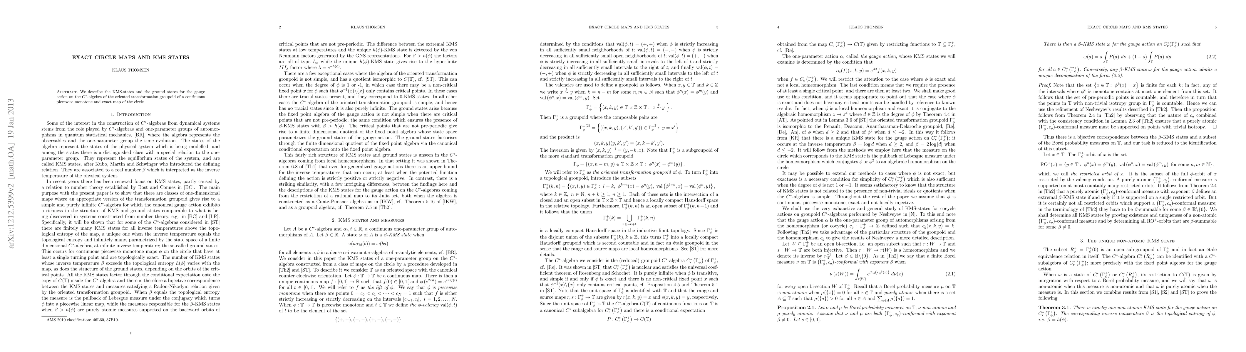 We describe the KMS-states and the ground states for the gauge action on the C*-algebra of the oriented transformation groupoid of a continuous piecewise monotone and exact map of the circle.