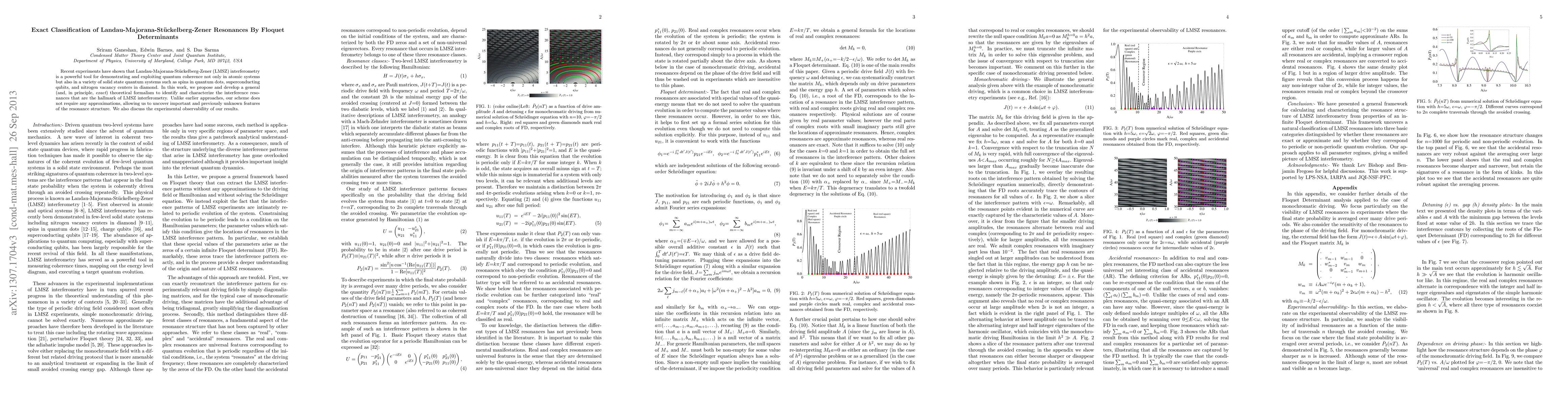 This paper proposes a new theoretical framework using Floquet determinants to classify Landau-Majorana-Stückelberg-Zener (LMSZ) interferometry resonances without approximations, revealing previously unknown features and discussing their experimental observability in various solid-state quantum systems.