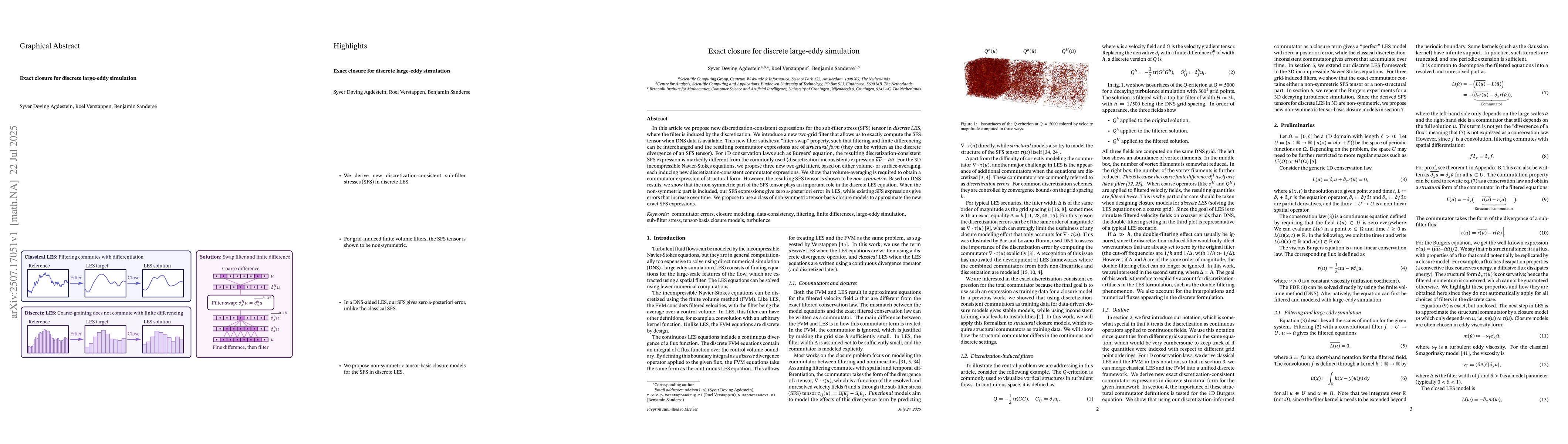In this article we propose new discretization-consistent expressions for the sub-filter stress (SFS) tensor in discrete LES, where the filter is induced by the discretization. We introduce a new two-grid filter that allows us to exactly compute the SFS tensor when DNS data is available. This new filter satisfies a "filter-swap" property, such that filtering and finite differencing can be interchanged and the resulting commutator expressions are of structural form (they can be written as the discrete divergence of an SFS tensor). For 1D conservation laws such as Burgers' equation, the resulting discretization-consistent SFS expression is markedly different from the commonly used (discretization-inconsistent) expression $\overline{u u} - \bar{u} \bar{u}$. For the 3D incompressible Navier-Stokes equations, we propose three new two-grid filters, based on either volume- or surface-averaging, each inducing new discretization-consistent commutator expressions. We show that volume-averaging is required to obtain a commutator expression of structural form. However, the resulting SFS tensor is shown to be non-symmetric. Based on DNS results, we show that the non-symmetric part of the SFS tensor plays an important role in the discrete LES equation. When the non-symmetric part is included, our SFS expressions give zero a-posteriori error in LES, while existing SFS expressions give errors that increase over time. We propose to use a class of non-symmetric tensor-basis closure models to approximate the new exact SFS expressions.