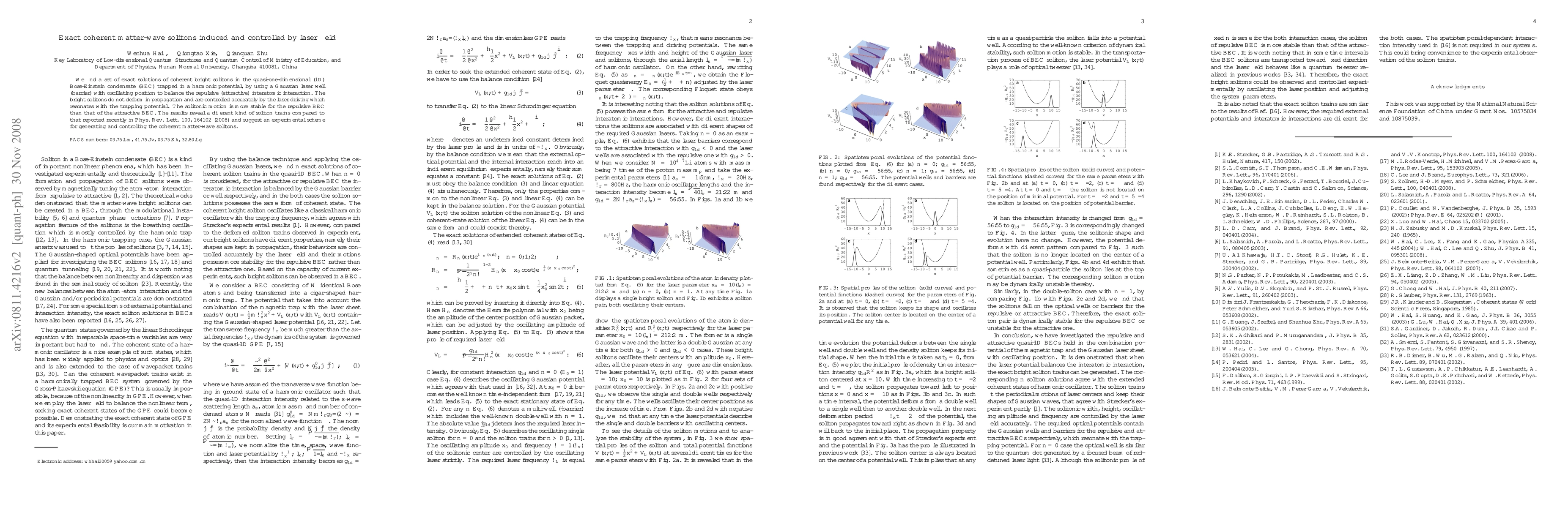 This research presents exact solutions for coherent bright solitons in a 1D Bose-Einstein condensate, stabilized by a Gaussian laser field. The solitons remain undeformed and are precisely controlled by the laser, with greater stability observed in repulsive BECs compared to attractive ones.
