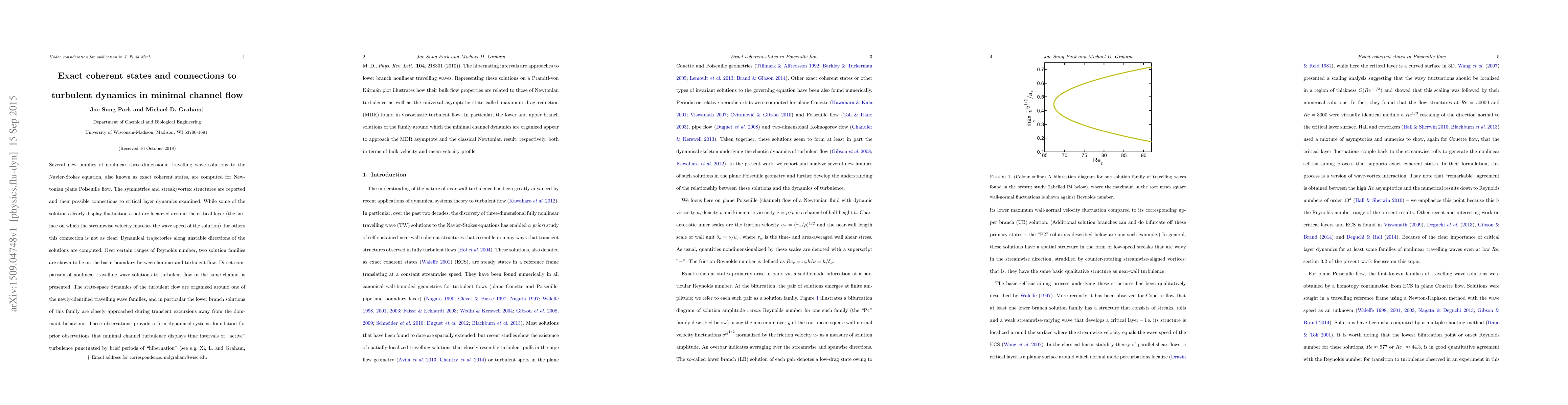 This paper identifies new exact coherent states in minimal channel flow, revealing their connection to turbulent dynamics. It shows that these states, particularly lower branch solutions, closely resemble transient states in turbulent flow, supporting observations of intermittent turbulence.