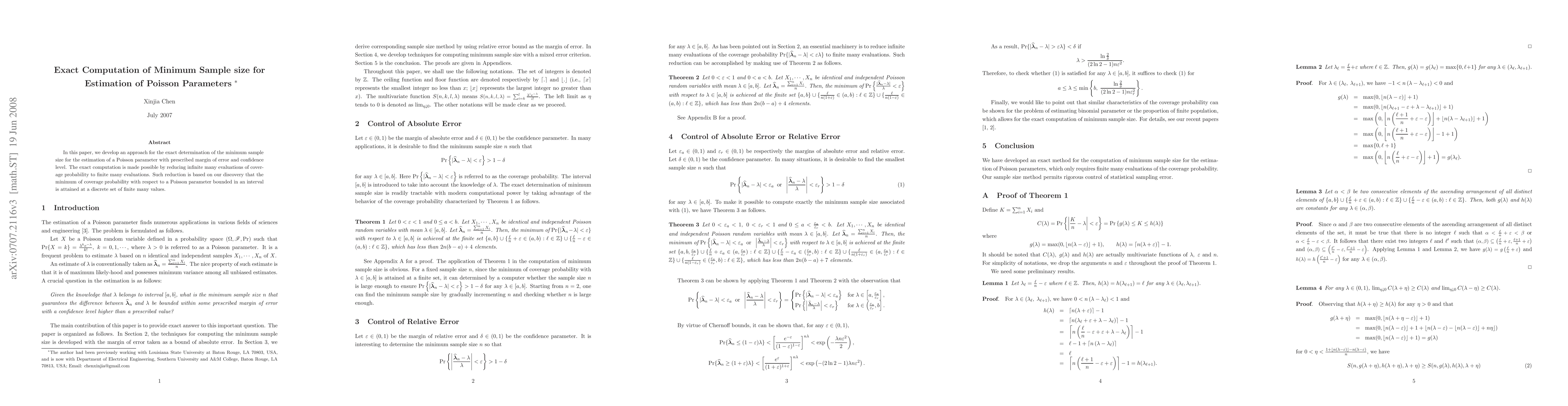 Researchers developed a method to exactly determine the minimum sample size required for estimating a Poisson parameter within a specified margin of error and confidence level. This breakthrough reduces infinite calculations to finite ones, making it more efficient and accurate.
