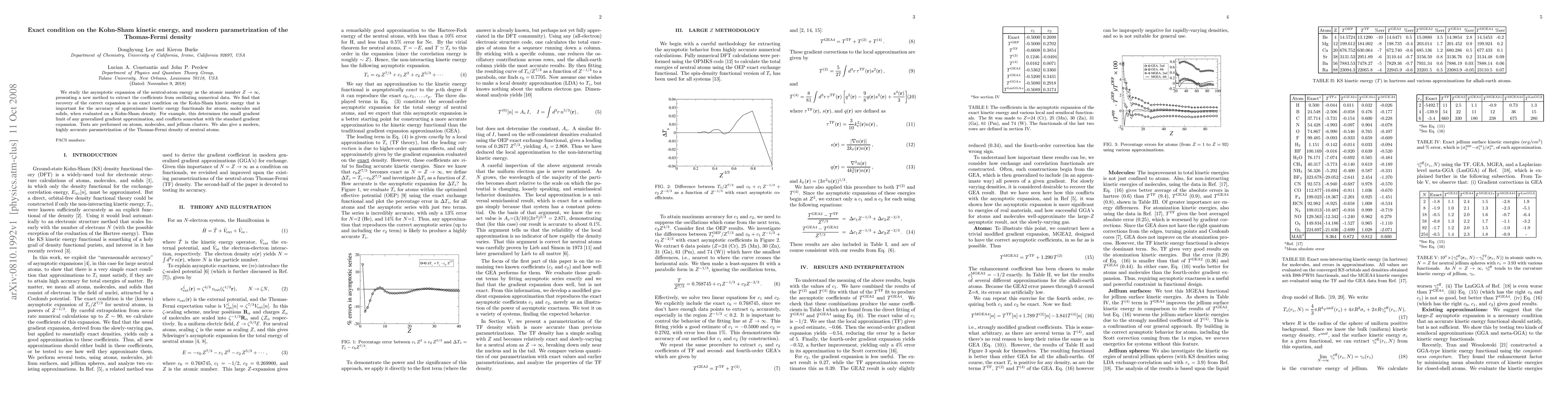 This paper presents a new method for extracting coefficients from numerical data to study the asymptotic expansion of neutral-atom energy, revealing that accurate Kohn-Sham kinetic energy is crucial for the precision of kinetic energy functionals. It also introduces a modern parametrization of the Thomas-Fermi density for neutral atoms.