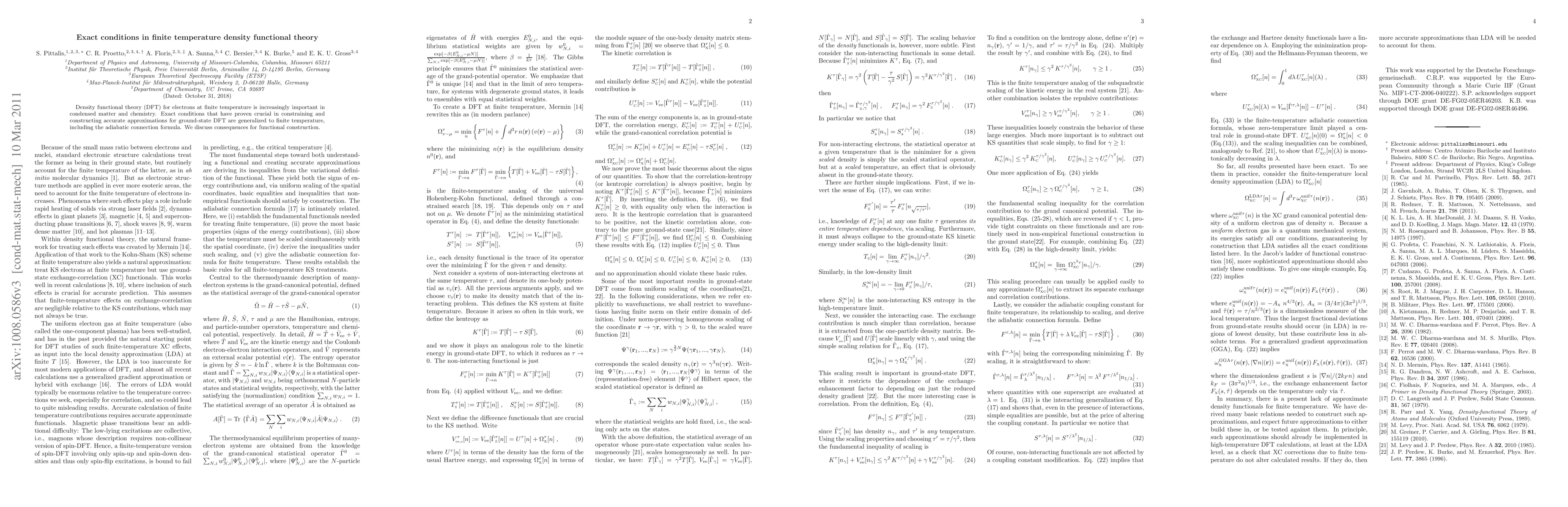 This paper derives exact properties and scaling relations for finite temperature density functional theory, introducing a coordinate scaling transformation at finite temperature to improve the development of efficient approximations for the theory. The focus is on understanding the exact conditions that guide these approximations.