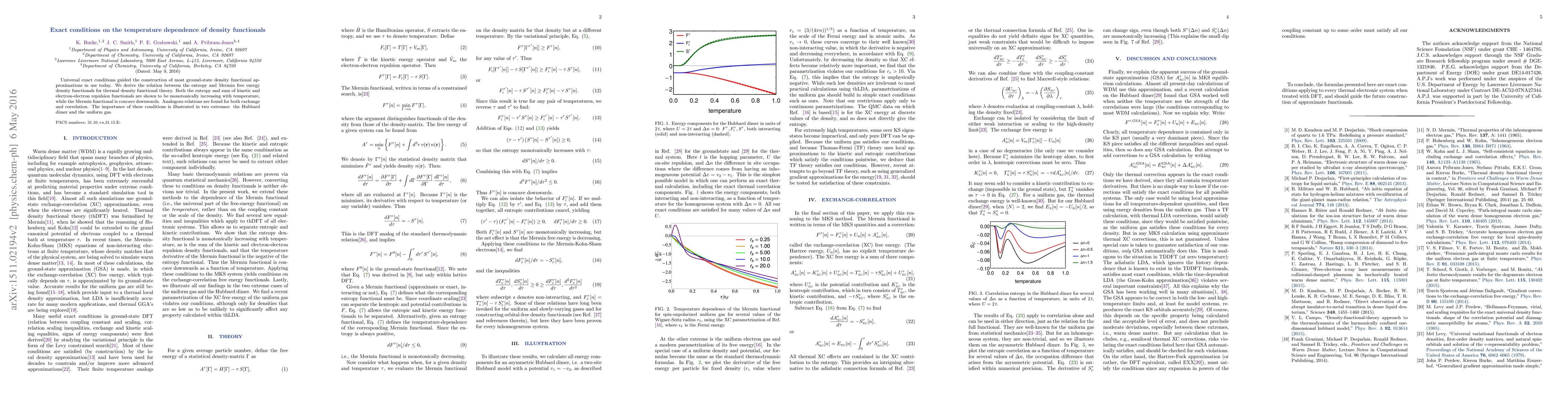 This paper derives exact conditions for the temperature dependence of density functionals, showing that entropy and the sum of kinetic and electron-electron repulsion functionals increase with temperature, while the Mermin functional decreases. These findings are demonstrated through the Hubbard dimer and the uniform electron gas.