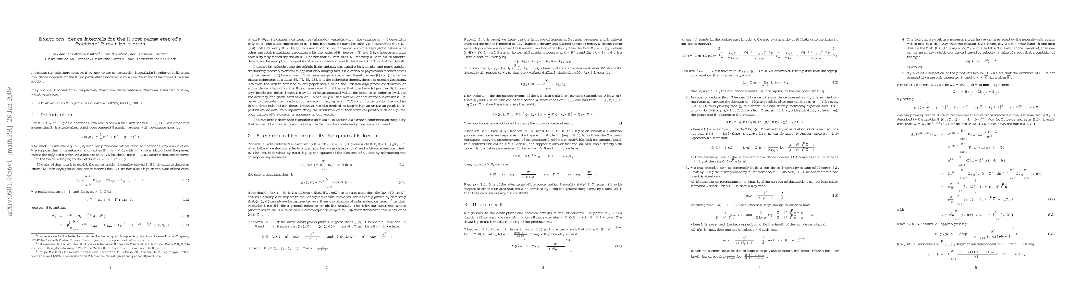 Summary: This paper demonstrates the construction of exact confidence intervals for the Hurst parameter of fractional Brownian motion using concentration inequalities, providing a reliable method for estimating the long-memory property of the process.