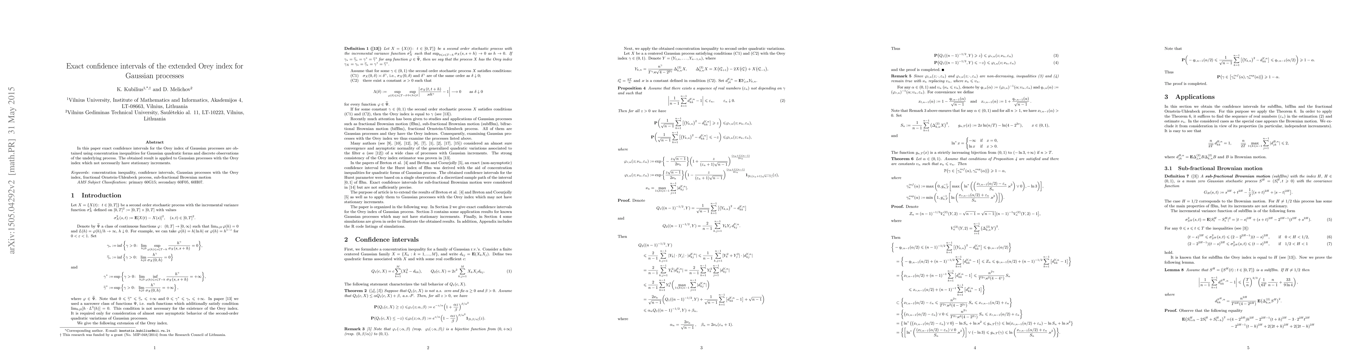 This paper derives exact confidence intervals for the extended Orey index of Gaussian processes, leveraging concentration inequalities for Gaussian quadratic forms and discrete observations. The methodology is applied to Gaussian processes with non-stationary increments.