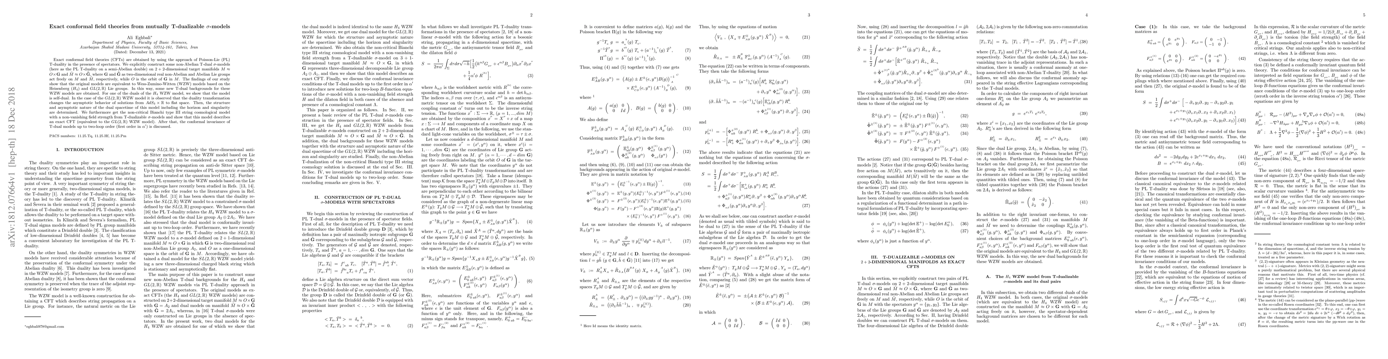 Exact conformal field theories (CFTs) are obtained by using the approach of Poisson-Lie (PL) T-duality in the presence of spectators. We explicitly construct some non-Abelian T-dual $\sigma$-models (here as the PL T-duality on a semi-Abelian double) on $2+2$-dimensional target manifolds $M \approx O \times \bf G$ and ${\tilde M} \approx O \times {\bf {\tilde G}}$, where $\bf G$ and ${\bf {\tilde G}}$ as two-dimensional real non-Abelian and Abelian Lie groups act freely on $M$ and $\tilde M$, respectively, while $O$ is the orbit of $\bf G$ in $M$. The findings of our study show that the original models are equivalent to Wess-Zumino-Witten (WZW) models based on the Heisenberg $(H_4)$ and $GL(2,\mathbb{R})$ Lie groups. In this way, some new T-dual backgrounds for these WZW models are obtained. For one of the duals of the $H_4$ WZW model, we show that the model is self-dual. In the case of the $GL(2,\mathbb{R})$ WZW model it is observed that the duality transformation changes the asymptotic behavior of solutions from $AdS_{3} \times \mathbb{R}$ to flat space. Then, the structure and asymptotic nature of the dual spacetime of this model including the horizon and singularity are determined. We furthermore get the non-critical Bianchi type III string cosmological model with a non-vanishing field strength from T-dualizable $\sigma$-models and show that this model describes an exact CFT (equivalent to the $GL(2,\mathbb{R})$ WZW model). After that, the conformal invariance of T-dual models up to two-loop order (first order in $\alpha'$) is discussed.