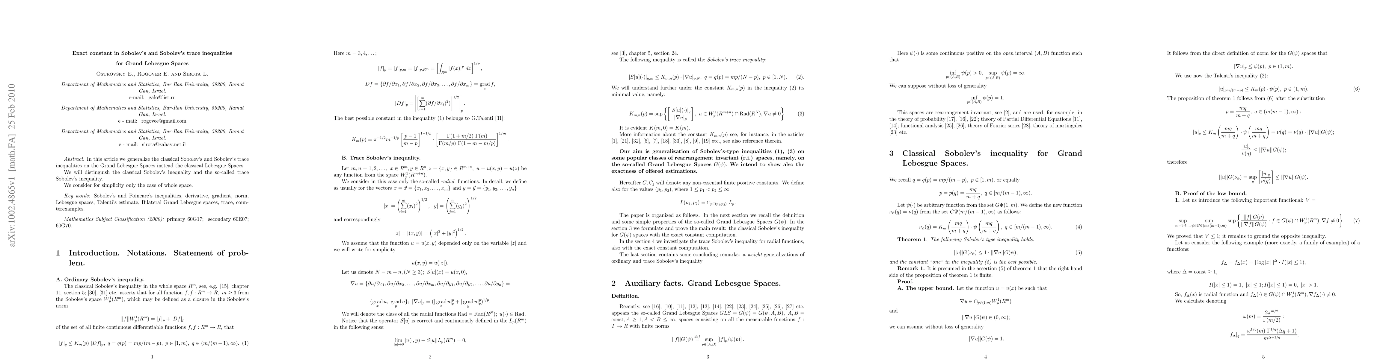 This paper generalizes classical Sobolev and trace inequalities to Grand Lebesgue Spaces, distinguishing between the classical Sobolev inequality and the trace version, focusing on the whole space for simplicity.