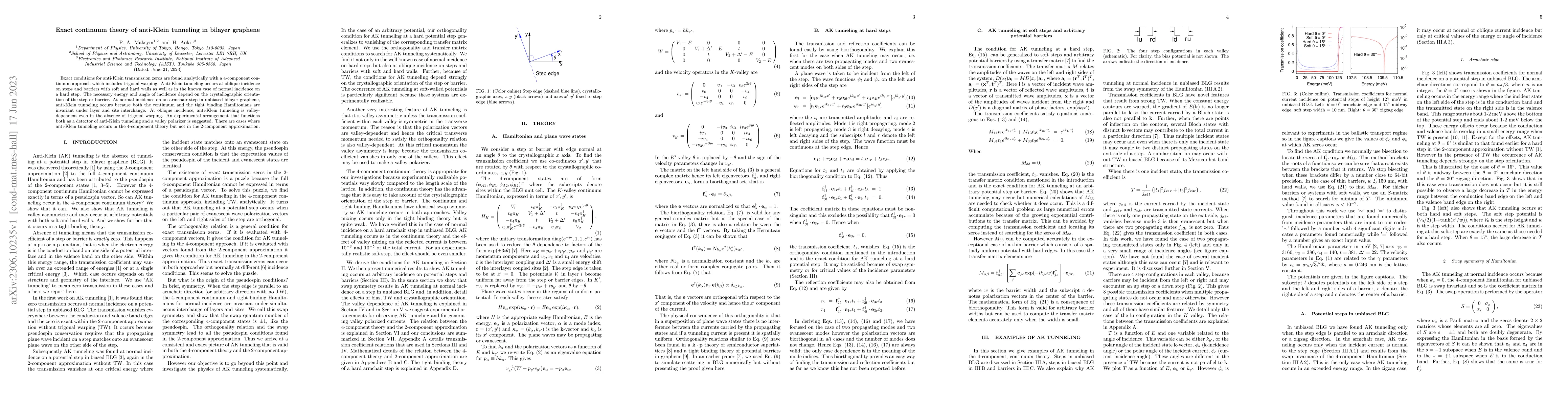 Exact conditions for anti-Klein transmission zeros are found analytically with a 4-component continuum approach which includes trigonal warping. Anti-Klein tunneling occurs at oblique incidence on steps and barriers with soft and hard walls as well as in the known case of normal incidence on a hard step. The necessary energy and angle of incidence depend on the crystallographic orientation of the step or barrier. At normal incidence on an armchair step in unbiased bilayer graphene, anti-Klein tunneling occurs because both the continuum and the tight binding Hamiltonians are invariant under layer and site interchange. At oblique incidence, anti-Klein tunneling is valley-dependent even in the absence of trigonal warping. An experimental arrangement that functions both as a detector of anti-Klein tunneling and a valley polarizer is suggested. There are cases where anti-Klein tunneling occurs in the 4-component theory but not in the 2-component approximation.