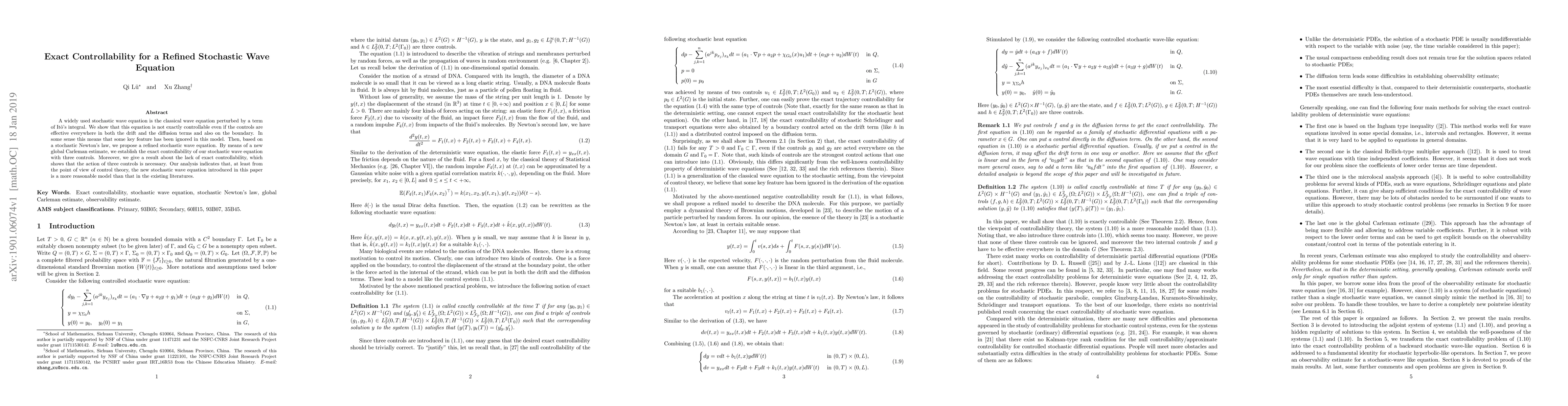 This paper demonstrates that a classical stochastic wave equation, perturbed by an Itô integral term, is not exactly controllable. It then proposes a refined stochastic wave equation based on a stochastic Newton's law, proving its exact controllability using a new global Carleman estimate and three controls, highlighting the necessity of this number of controls.