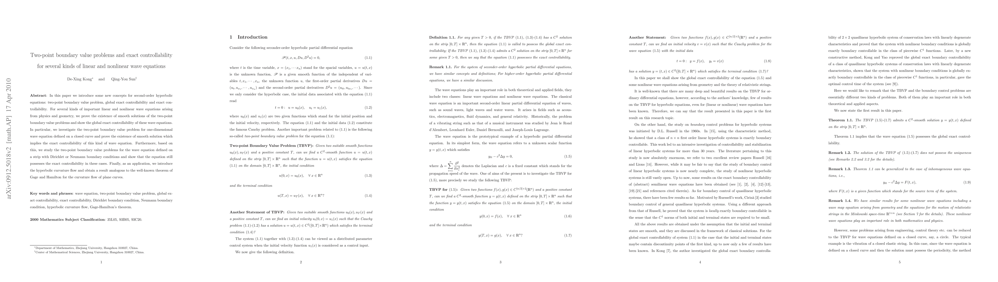 In this paper, we investigate the two-point boundary value problems for linear wave equation defined on a circle and prove that the equation possesses the exact controllability. We also investigate the two-point boundary value problems for the wave equation defined on a strip with Dirichlet or Neumann boundary conditions and show that the equation still possesses the exact controllability. see arXiv:0910.5782v1