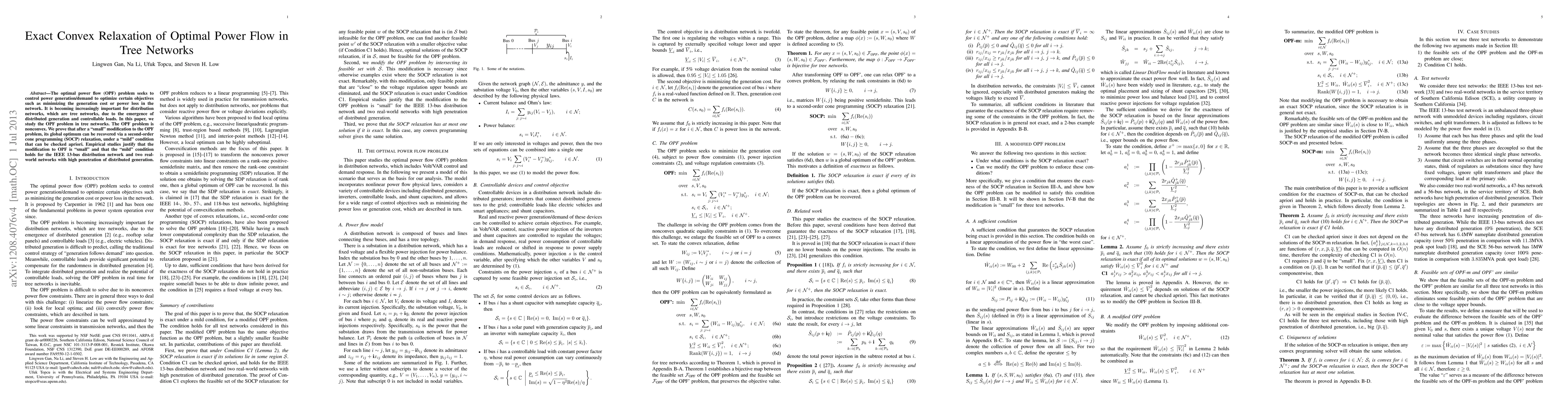 Researchers find a way to solve the optimal power flow problem in tree networks using second-order cone programming, enabling efficient control of power generation and demand. The method is validated on several real-world networks with high penetration of distributed generation.