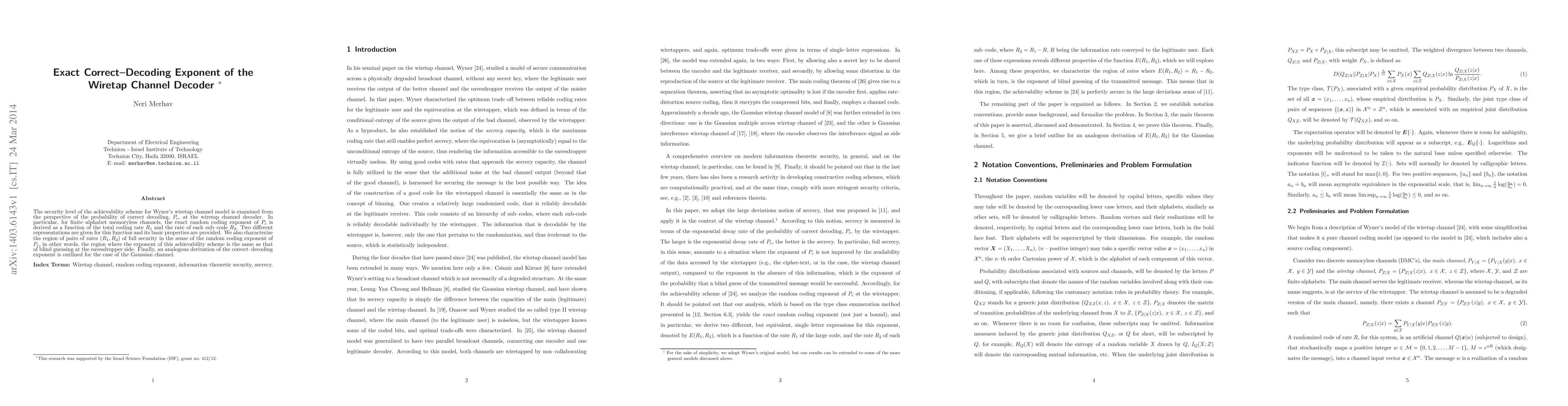 The security level of the achievability scheme for Wyner's wiretap channel model is examined from the perspective of the probability of correct decoding, $P_c$, at the wiretap channel decoder. In particular, for finite-alphabet memoryless channels, the exact random coding exponent of $P_c$ is derived as a function of the total coding rate $R_1$ and the rate of each sub-code $R_2$. Two different representations are given for this function and its basic properties are provided. We also characterize the region of pairs of rates $(R_1,R_2)$ of full security in the sense of the random coding exponent of $P_c$, in other words, the region where the exponent of this achievability scheme is the same as that of blind guessing at the eavesdropper side. Finally, an analogous derivation of the correct-decoding exponent is outlined for the case of the Gaussian channel.