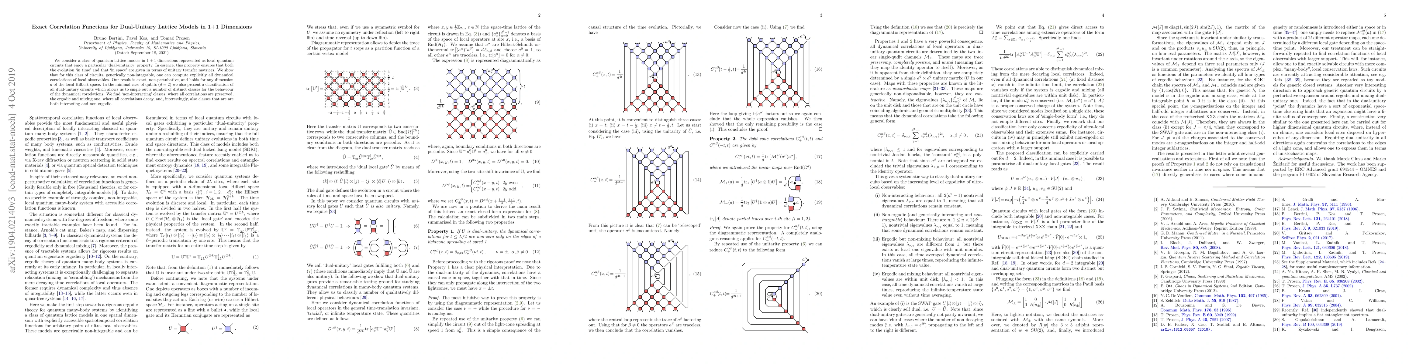 This paper computes exact correlation functions for quantum lattice models in 1+1 dimensions with a dual-unitarity property, showing that all dynamical correlations of local observables can be explicitly determined. The findings reveal distinct classes of behavior for the dynamical correlations, including preserved, decaying, and interacting non-ergodic classes.