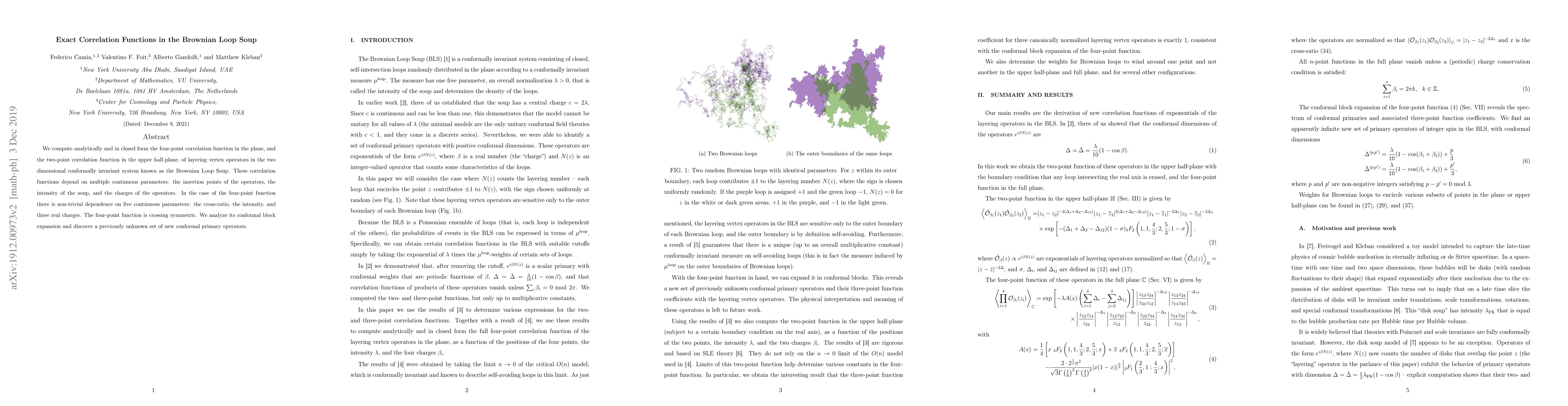 Researchers have calculated exact correlation functions in a 2D statistical system called Brownian Loop Soup, revealing new conformal primary operators and further understanding of its properties.