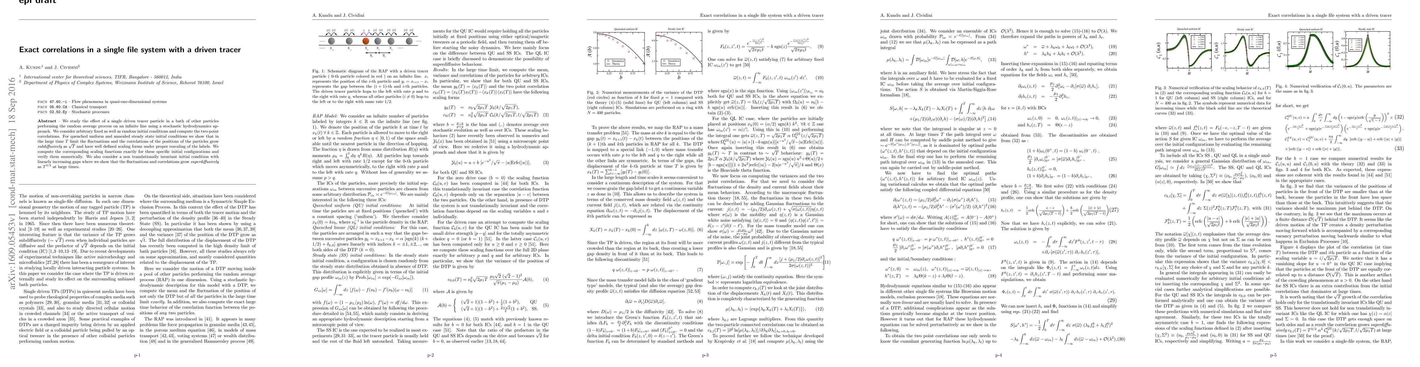 A study on a single driven tracer particle in a bath of particles shows subdiffusive growth of fluctuations and correlations with a scaling form of √T under large time limit T, while superdiffusive growth is observed for non-translationally invariant initial conditions with a scaling form of T^{3/2}.