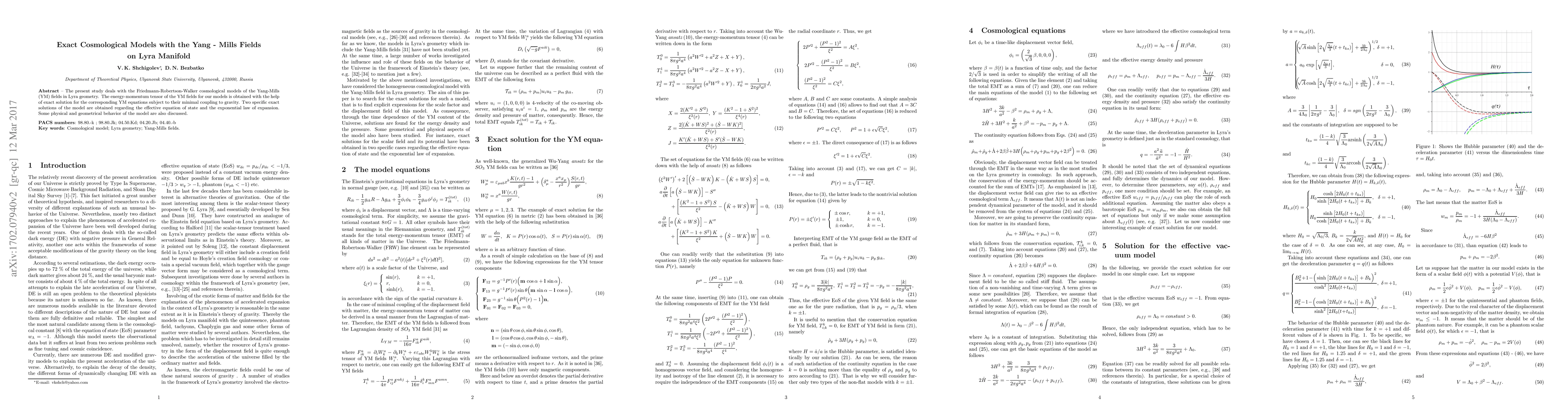 This paper explores Friedmann-Robertson-Walker cosmological models incorporating Yang-Mills fields within Lyra geometry, deriving exact solutions for the energy-momentum tensor and discussing the effective equation of state and exponential expansion law, alongside the model's physical and geometrical characteristics.