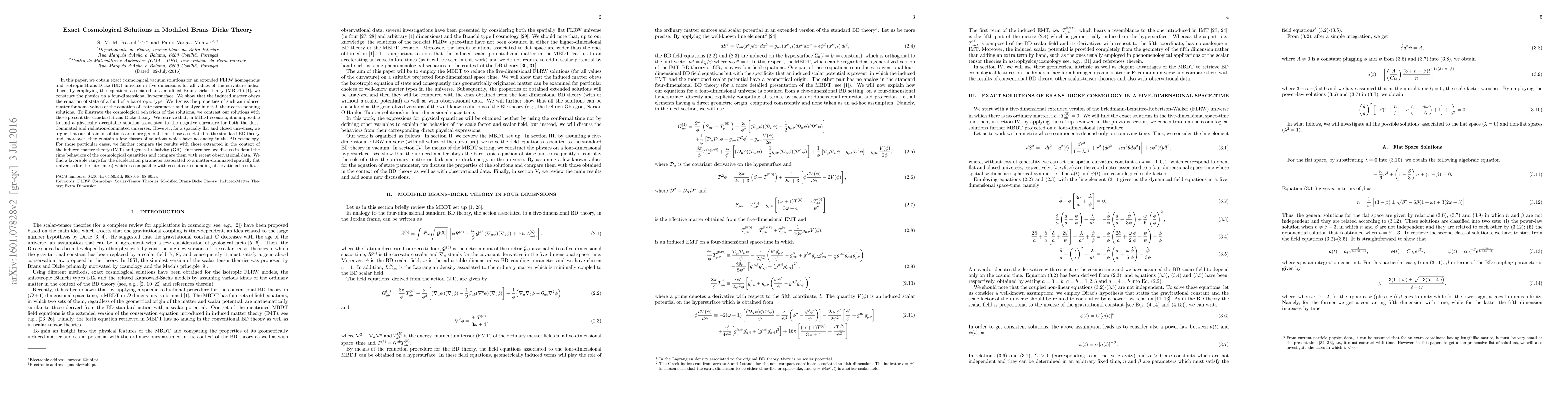 In this paper, we obtain exact cosmological vacuum solutions for an extended FLRW homogenous and isotropic Brans-Dicke (BD) universe in five dimensions for all values of the curvature index. Then, by employing the equations associated to a modified Brans-Dicke theory (MBDT) [1], we construct the physics on a four-dimensional hypersurface. We show that the induced matter obeys the equation of state of a fluid of a barotropic type. We discuss the properties of such an induced matter for some values of the equation of state parameter and analyze in detail their corresponding solutions. To illustrate the cosmological behaviors of the solutions, we contrast our solutions with those present the standard Brans-Dicke theory. We retrieve that, in MBDT scenario, it is impossible to find a physically acceptable solution associated to the negative curvature for both the dust-dominated and radiation-dominated universes. However, for a spatially flat and closed universes, we argue that our obtained solutions are more general than those associated to the standard BD theory and, moreover, they contain a few classes of solutions which have no analog in the BD cosmology. For those particular cases, we further compare the results with those extracted in the context of the induced matter theory (IMT) and general relativity (GR). Furthermore, we discuss in detail the time behaviors of the cosmological quantities and compare them with recent observational data. We find a favorable range for the deceleration parameter associated to a matter-dominated spatially flat universe (for the late times) which is compatible with recent corresponding observational results.