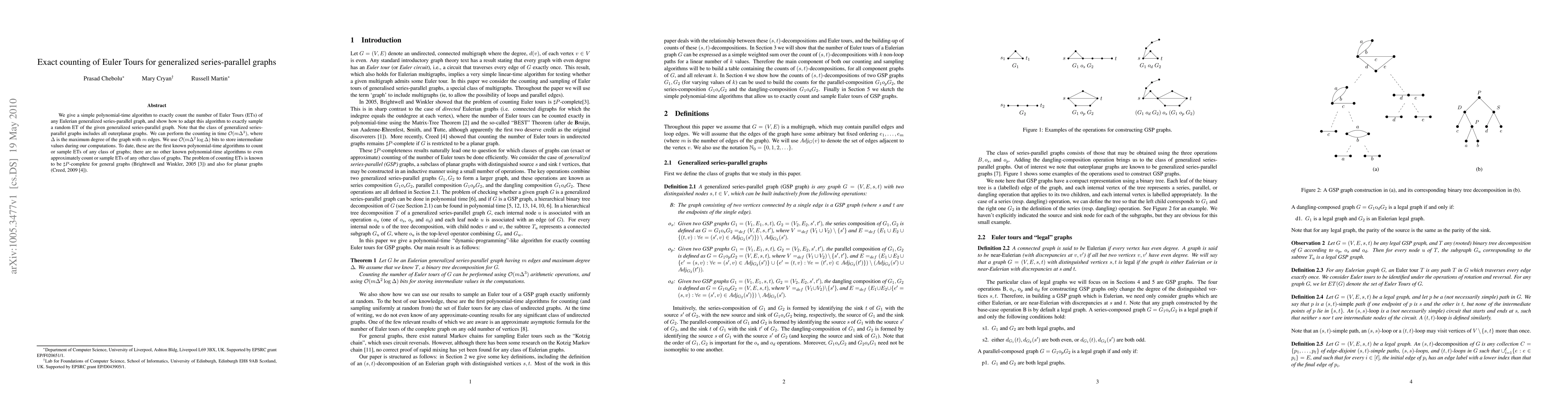 We give a simple polynomial-time algorithm to exactly count the number of Euler Tours (ETs) of any Eulerian generalized series-parallel graph, and show how to adapt this algorithm to exactly sample a random ET of the given generalized series-parallel graph. Note that the class of generalized seriesparallel graphs includes all outerplanar graphs. We can perform the counting in time $O(m\Delta^3)$, where $\Delta$ is the maximum degree of the graph with $m$ edges. We use $O(m\Delta^2 \log \Delta)$ bits to store intermediate values during our computations. To date, these are the first known polynomial-time algorithms to count or sample ETs of any class of graphs; there are no other known polynomial-time algorithms to even approximately count or sample ETs of any other class of graphs. The problem of counting ETs is known to be $#P$-complete for general graphs (Brightwell and Winkler, 2005 [3]) and also for planar graphs (Creed, 2009 [4]).