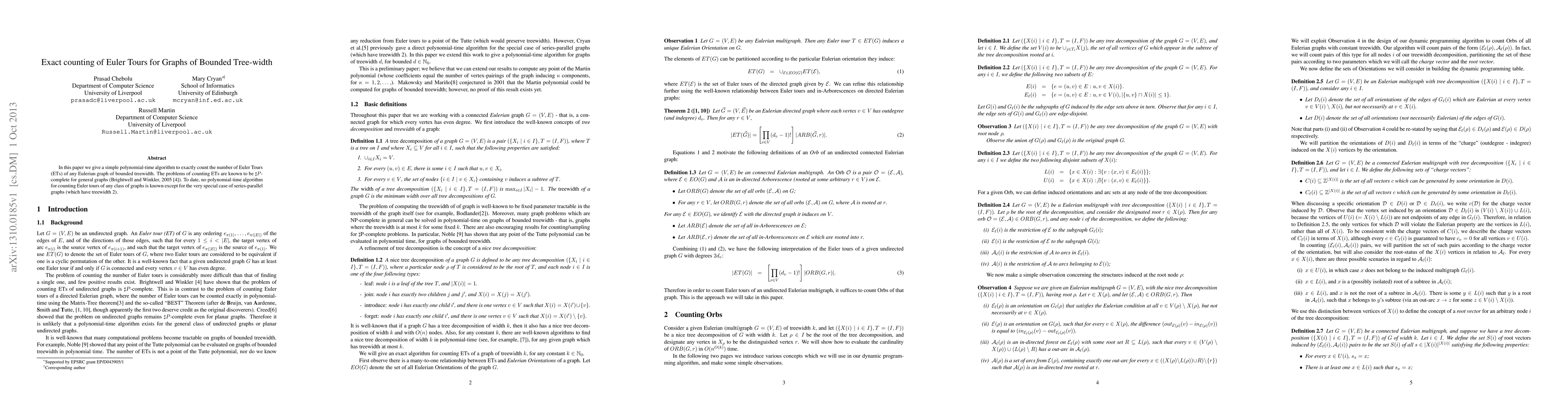 This paper presents a polynomial-time algorithm for exactly counting Euler Tours in Eulerian graphs with bounded treewidth, addressing a #P-complete problem for general graphs. Prior to this, only series-parallel graphs (treewidth 2) had a known polynomial-time counting method.