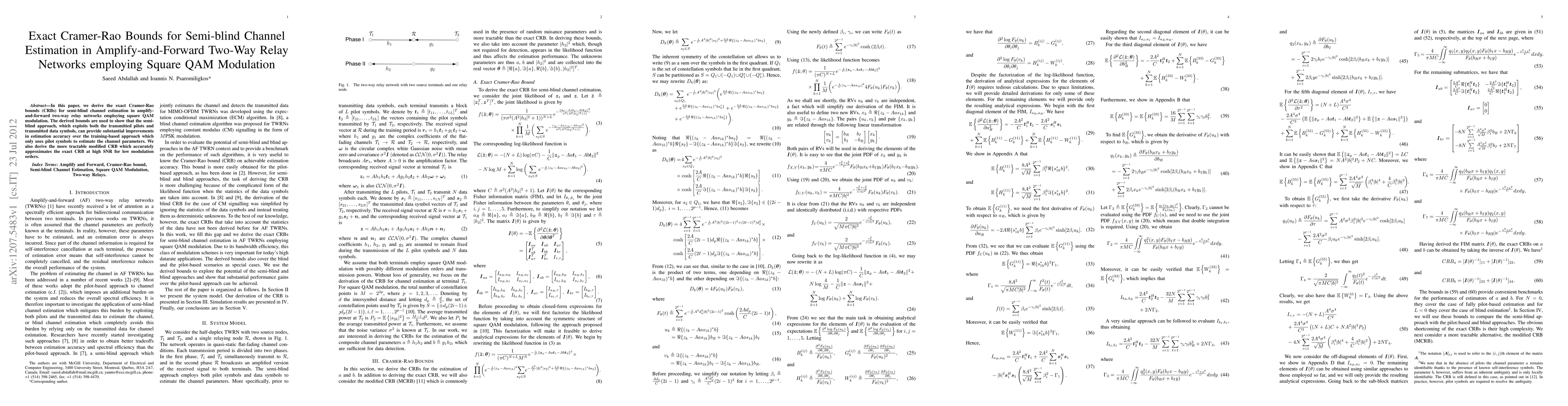 This paper derives the exact Cramer-Rao bounds for semi-blind channel estimation in amplify-and-forward two-way relay networks, covering modulation schemes like PSK and square QAM. It demonstrates that the semi-blind approach significantly improves estimation accuracy compared to training-based methods.