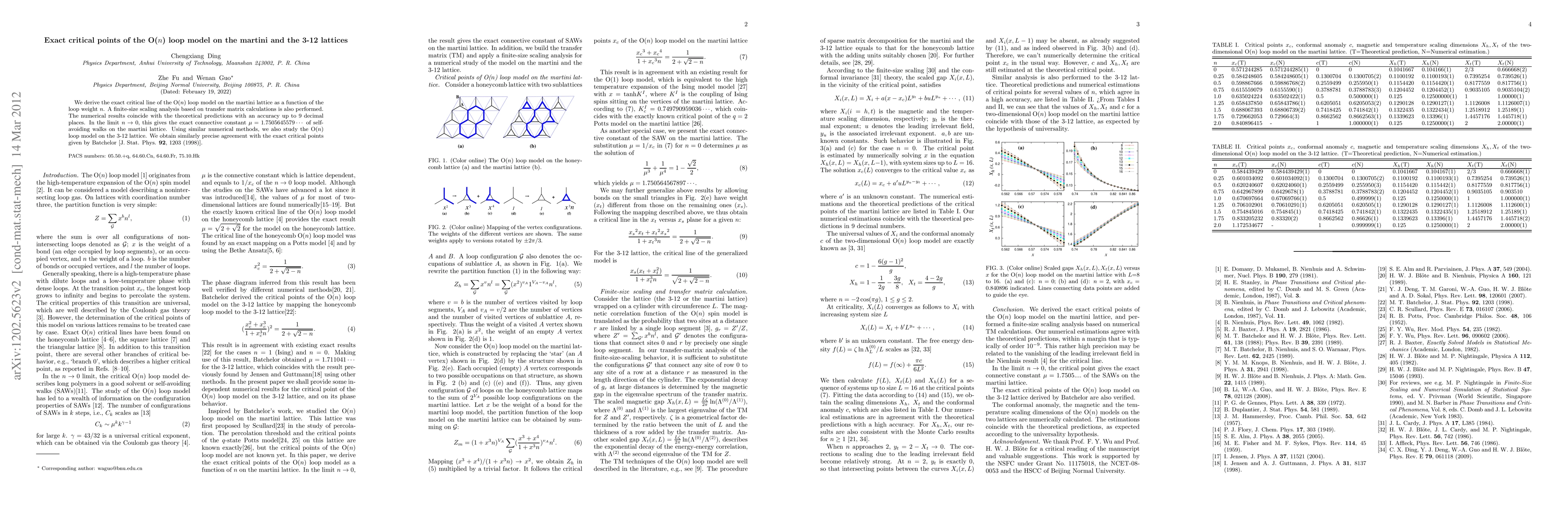 This paper derives the exact critical line for the O($n$) loop model on the martini lattice and performs a finite-size scaling analysis, achieving precise numerical agreement with theoretical predictions. It also extends similar methods to the 3-12 lattice, matching Batchelor's exact critical points.