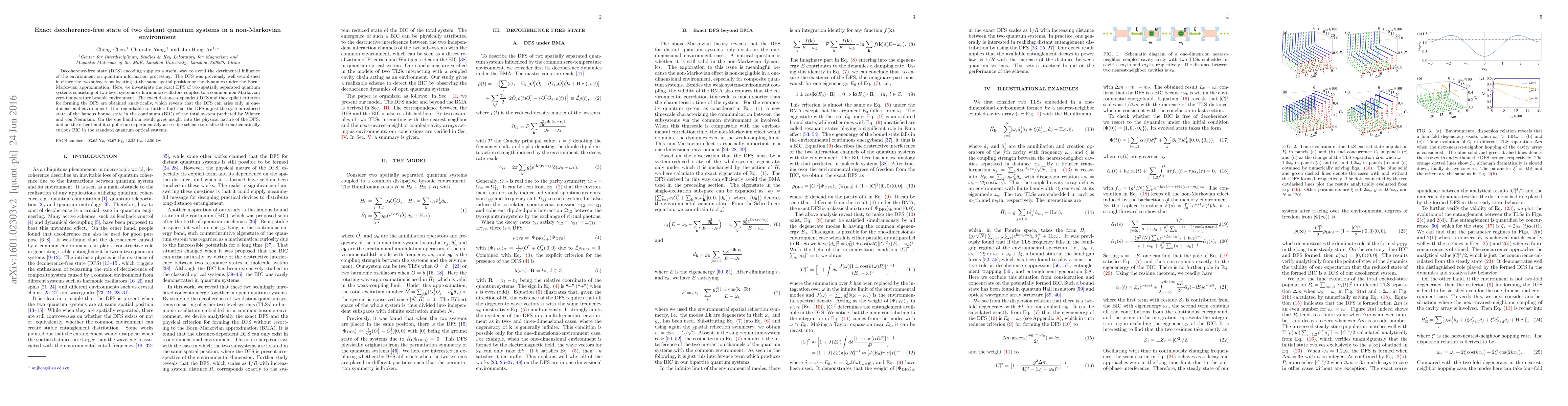 This research identifies exact decoherence-free states (DFS) for two spatially separated quantum systems interacting with a non-Markovian environment, revealing DFS emerges only in one-dimensional settings. The study also connects DFS to the bound state in the continuum (BIC), offering insights into DFS nature and a practical method to realize BIC in quantum optical systems.