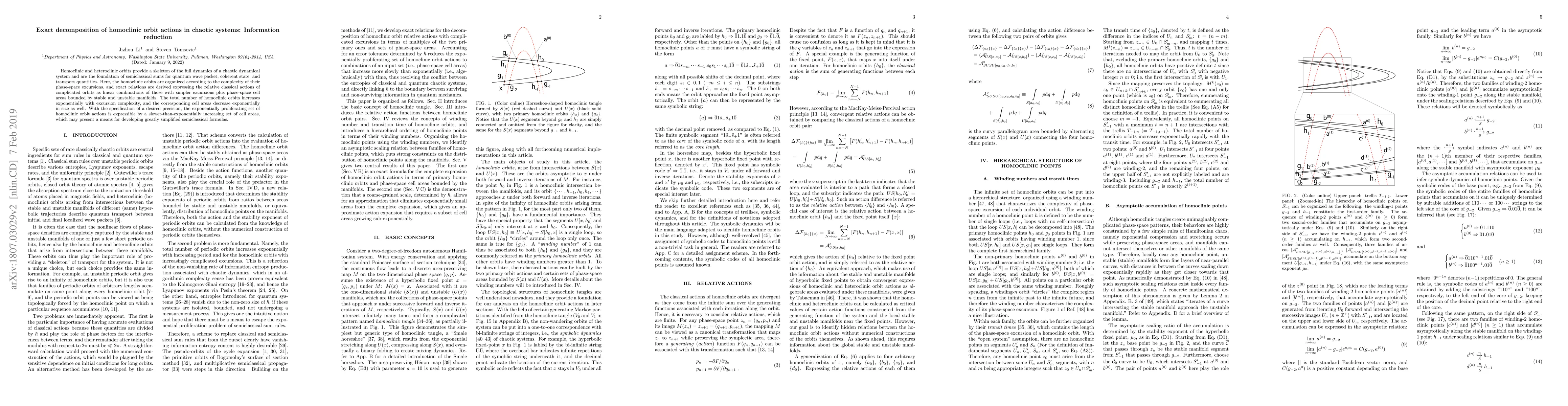 This research derives exact relations for organizing homoclinic orbits in chaotic systems based on their phase-space complexity, expressing complex orbit actions as linear combinations of simpler ones plus bounded cell areas. The method offers potential for simplifying semiclassical formulas by reducing exponentially proliferating orbit actions to a slower-growing set of cell areas, aiding in information reduction.