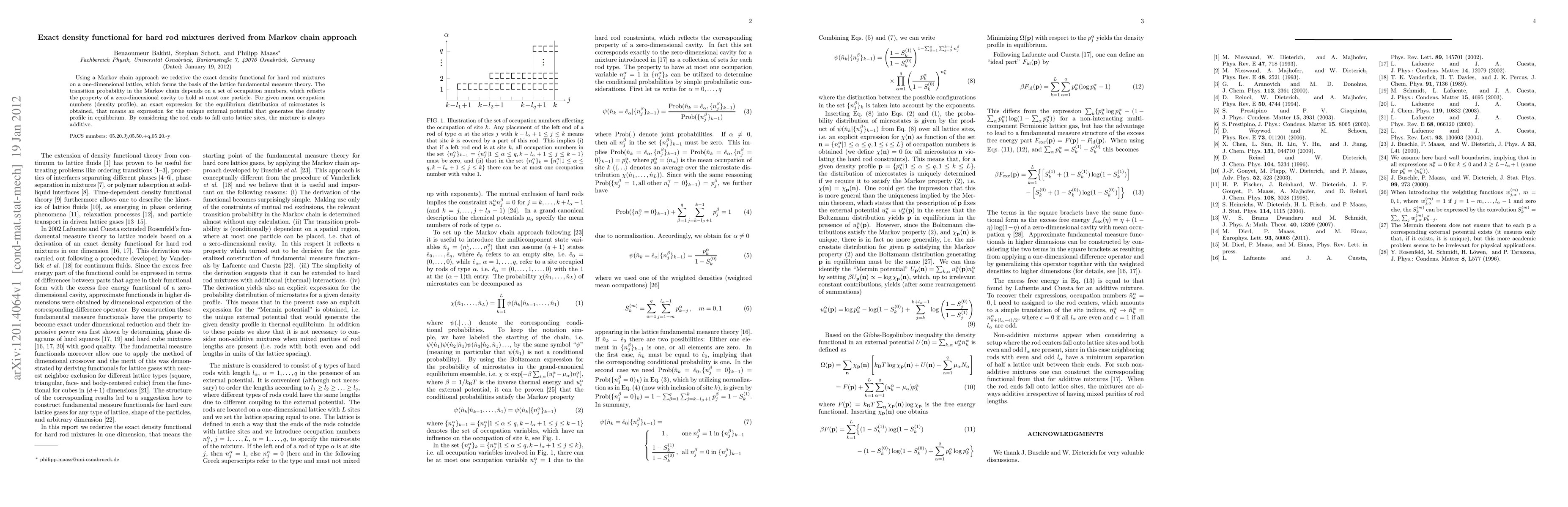 Researchers rederived the exact density functional for hard rod mixtures using a Markov chain approach, which provides an expression for the unique external potential that generates a given density profile in equilibrium.